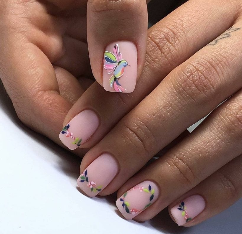 И снова рекомендуем обратить внимание на природу. Это действительно потрясающий творец. Здесь властвуют яркие оттенки — красный, оранжевый, зеленый, серый и коричневый. Для создания нежного маникюра берите эти активные оттенки, но преобразуйте их. Вместо оранжевого подойдет коралловый, красный меняем на розовый, темный серый на пастельный, а коричневый заменим оттенком капучино.