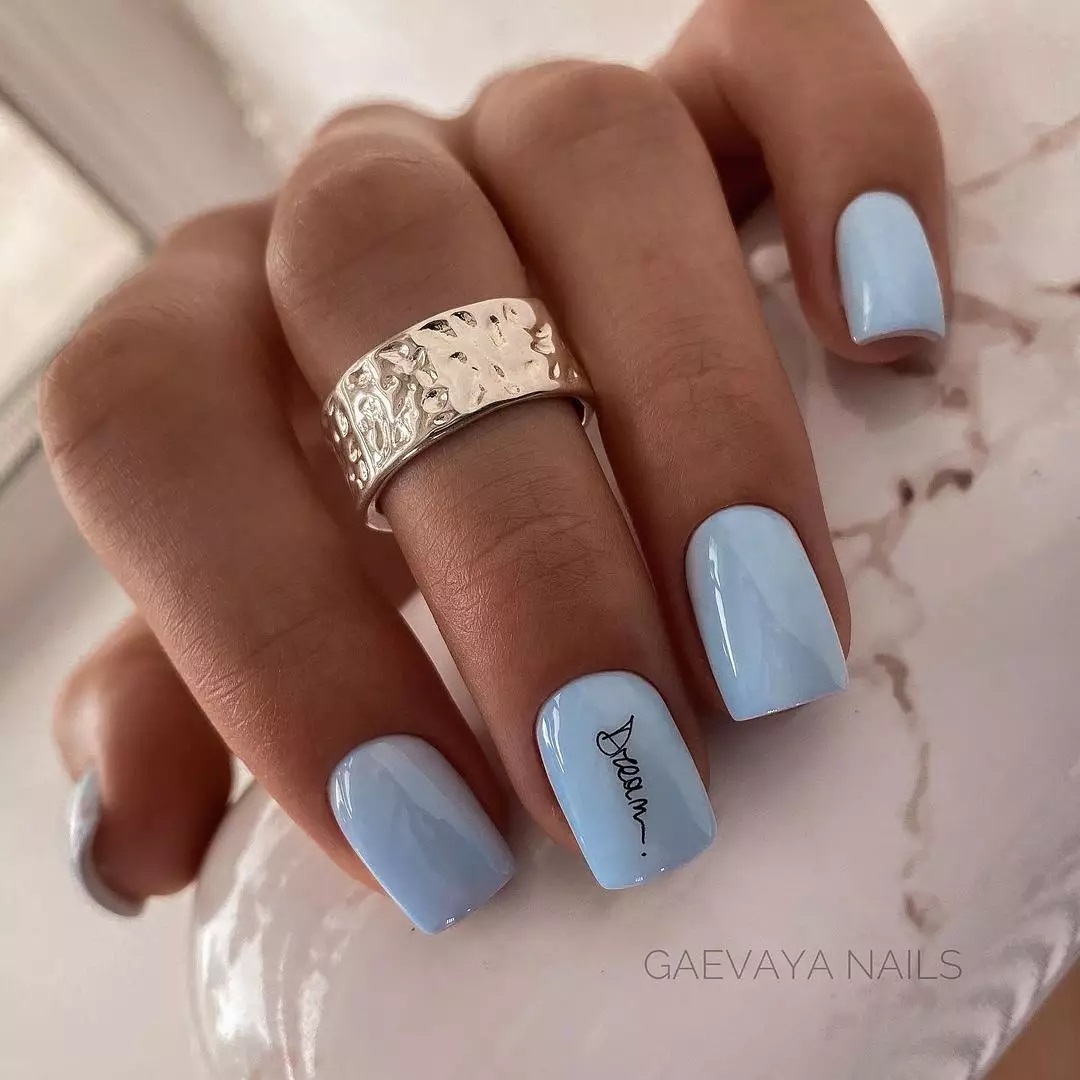 - цветовая палитра. Прежде всего нежный маникюр делают, используя пастельные или нюдовые оттенки лака. Это бежевый, молочный, голубой, пыльная роза и др. Они универсальны и уже который сезон держатся в лидерах. Без этих лаков создать действительно стильный образ вряд ли получится. Но это не значит, что вам нужно полностью отказаться от ярких и густых оттенков. Таких как красный, синий, зеленый и черный. Но мы рекомендуем использовать их дозированно — в качестве акцента, например. А вот от неоновых и кислотных лаков при создании нежного маникюра придется отказаться. Они помогут продемонстрировать смелость и некоторую агрессивность натуры, но не нежность и женственность;