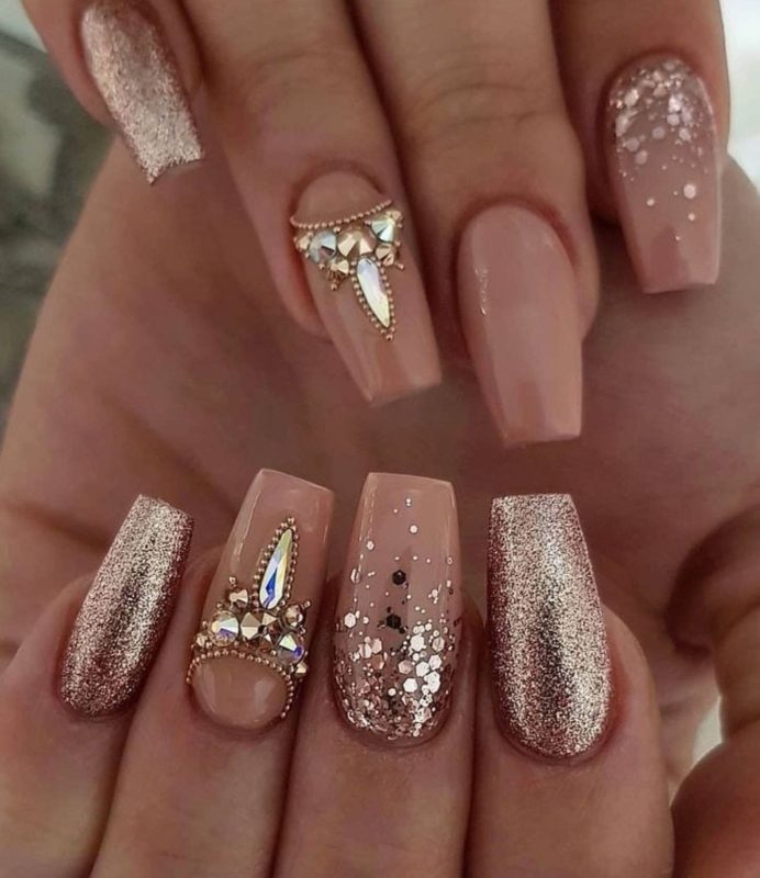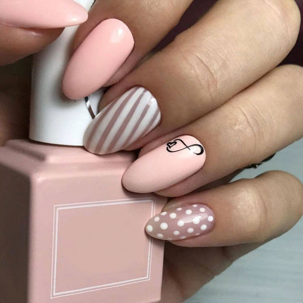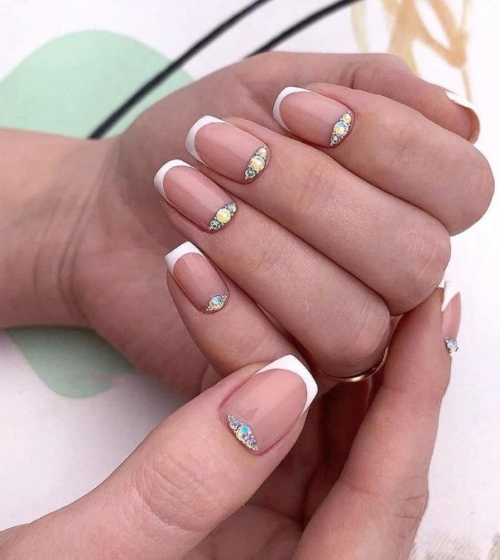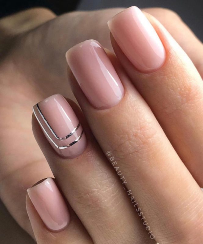 Нюдовая палитра богата оттенками лака. Они станут отличной базой для делового маникюра. Нюдовая основа позволяет выбирать более смелые решения декора, уравновешивая и адаптируя их под деловой стиль.