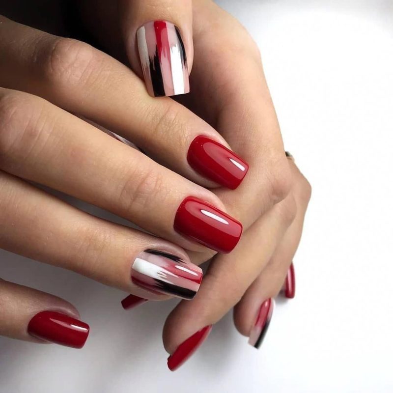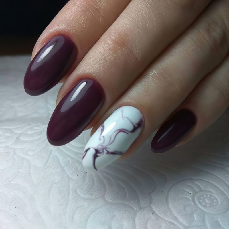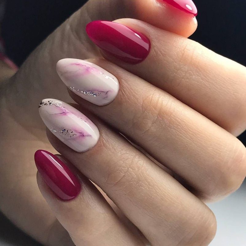 Несмотря на то, что красный считается слишком страстным и роковым он может использоваться в дизайне ногтей для офиса. Главное — выбирайте из палитры спокойные глубокие оттенки. Это бордо, вишневый, винный, марсала и другие.