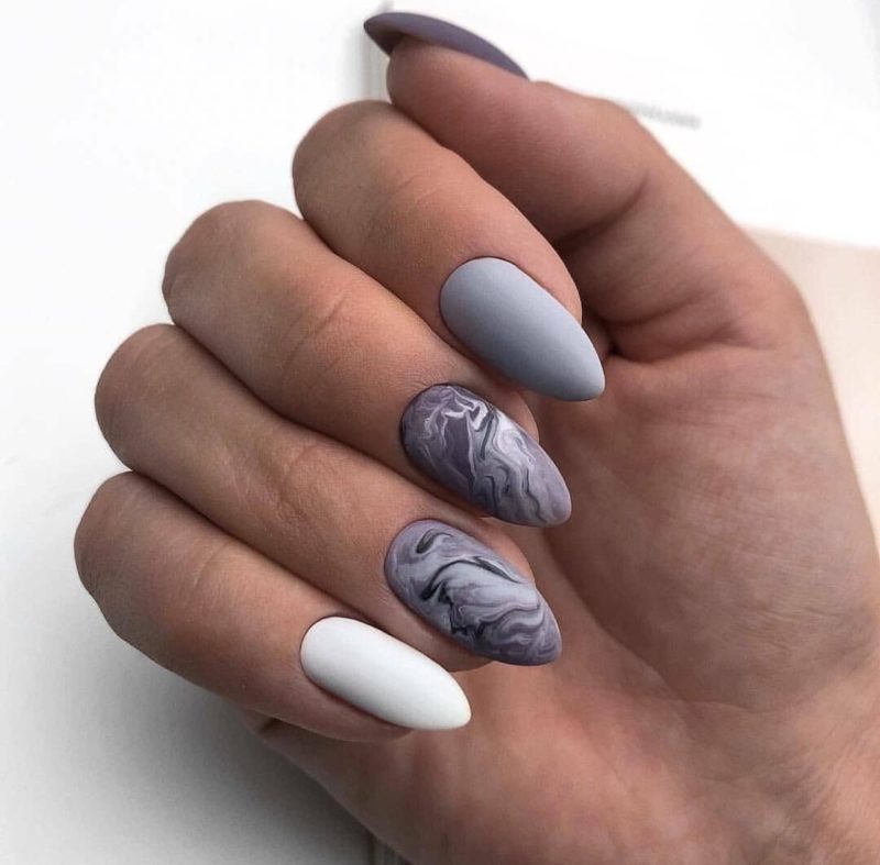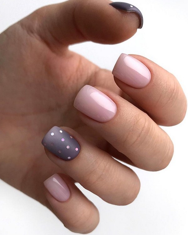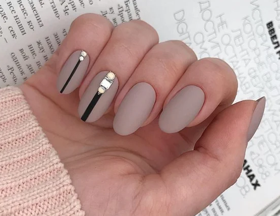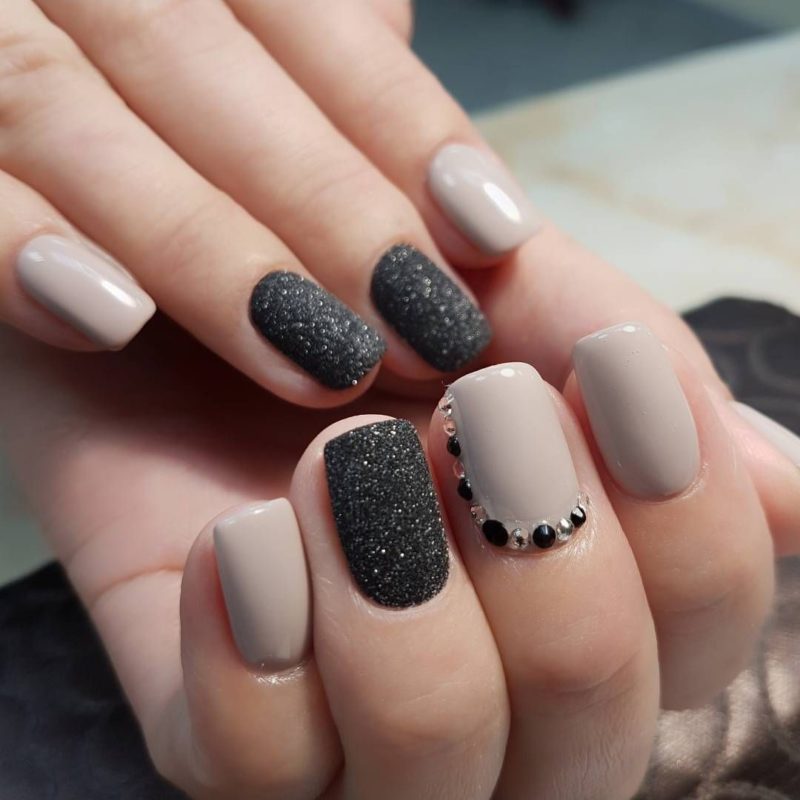 Серый давно уже входит в топ оттенков лака для модного оформления ногтей. В деловой образ серый впишется как нельзя лучше. Его можно сочетать с белым, пудрово-розовым, синим и даже черным.