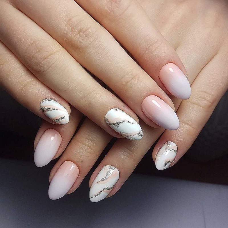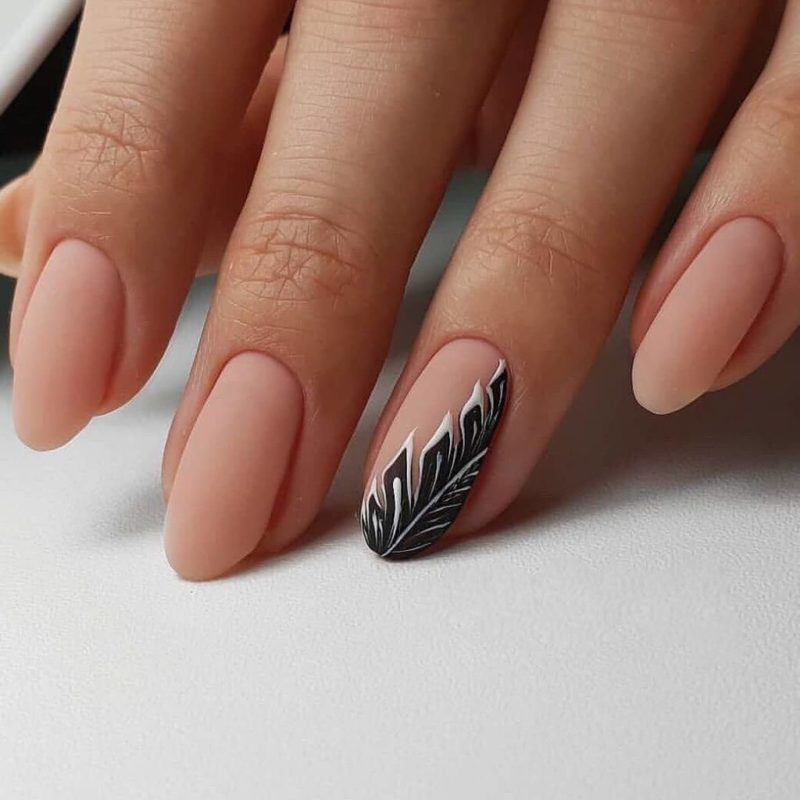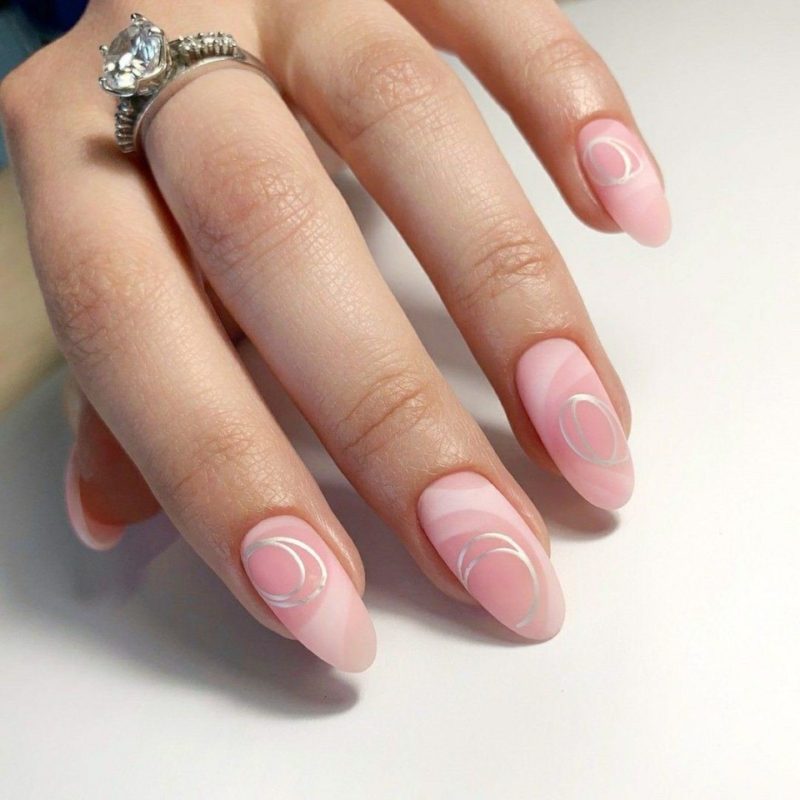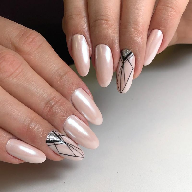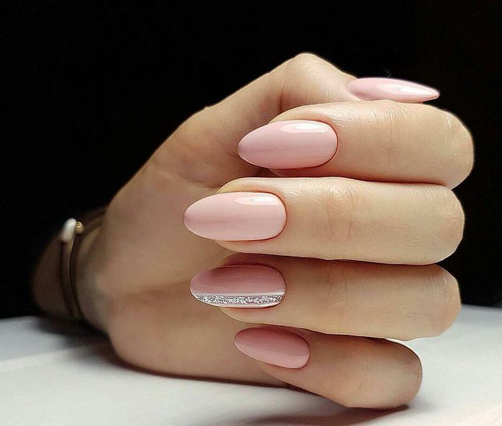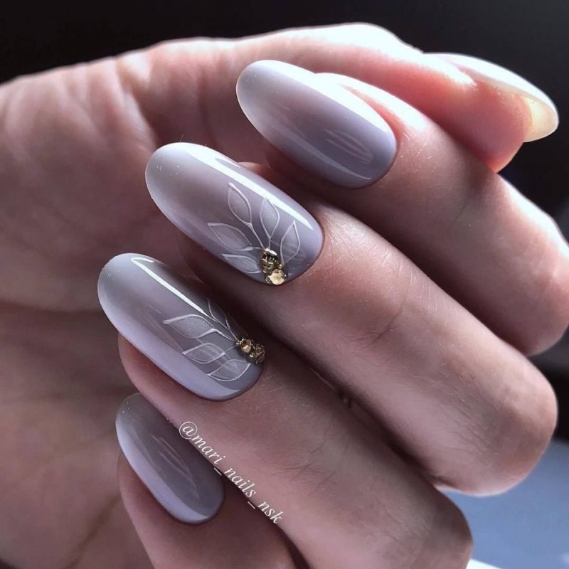 Овальная форма — максимально естественная и естественная. Такие ногти точно не будут под запретом в офисе. Для дизайна можно выбирать практически любую технику, но помните о правиле умеренности. Если решили выбрать для декора втирку, выделяйте только один пальчик.