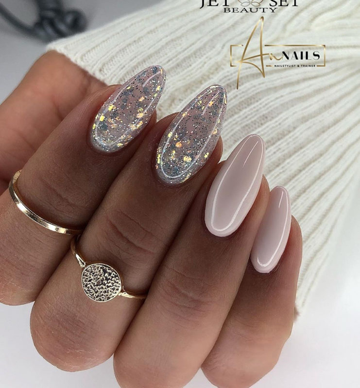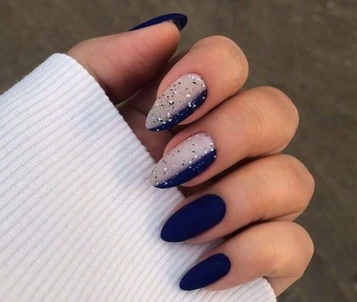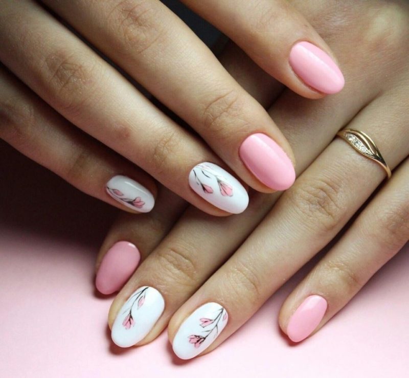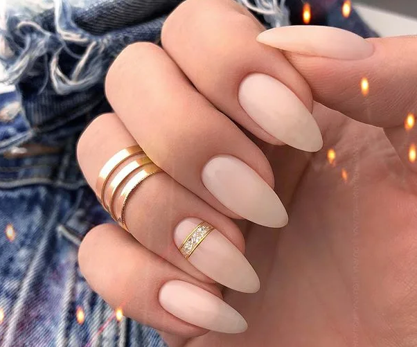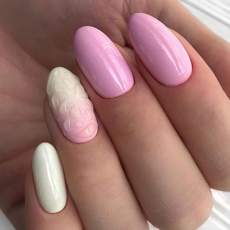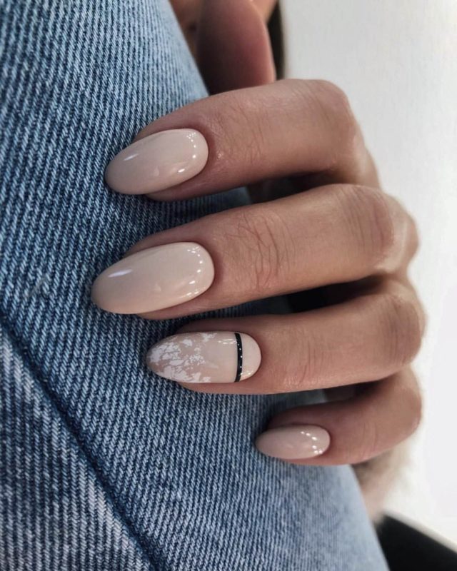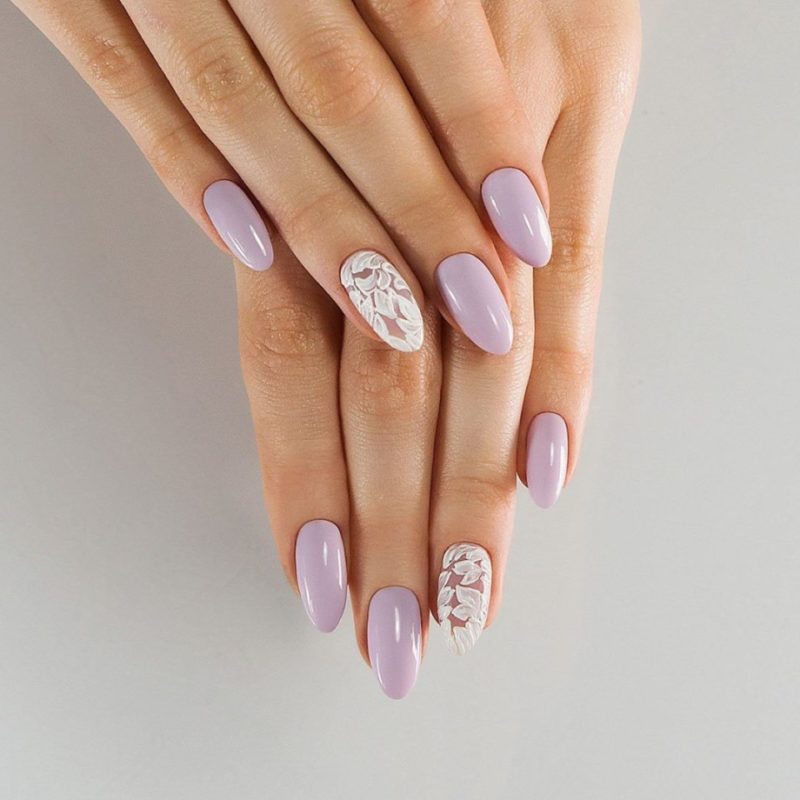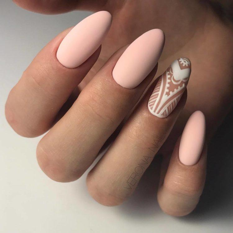 Овальная форма — максимально естественная и естественная. Такие ногти точно не будут под запретом в офисе. Для дизайна можно выбирать практически любую технику, но помните о правиле умеренности. Если решили выбрать для декора втирку, выделяйте только один пальчик.