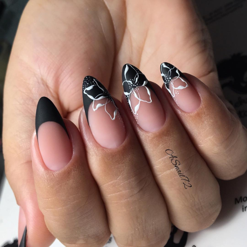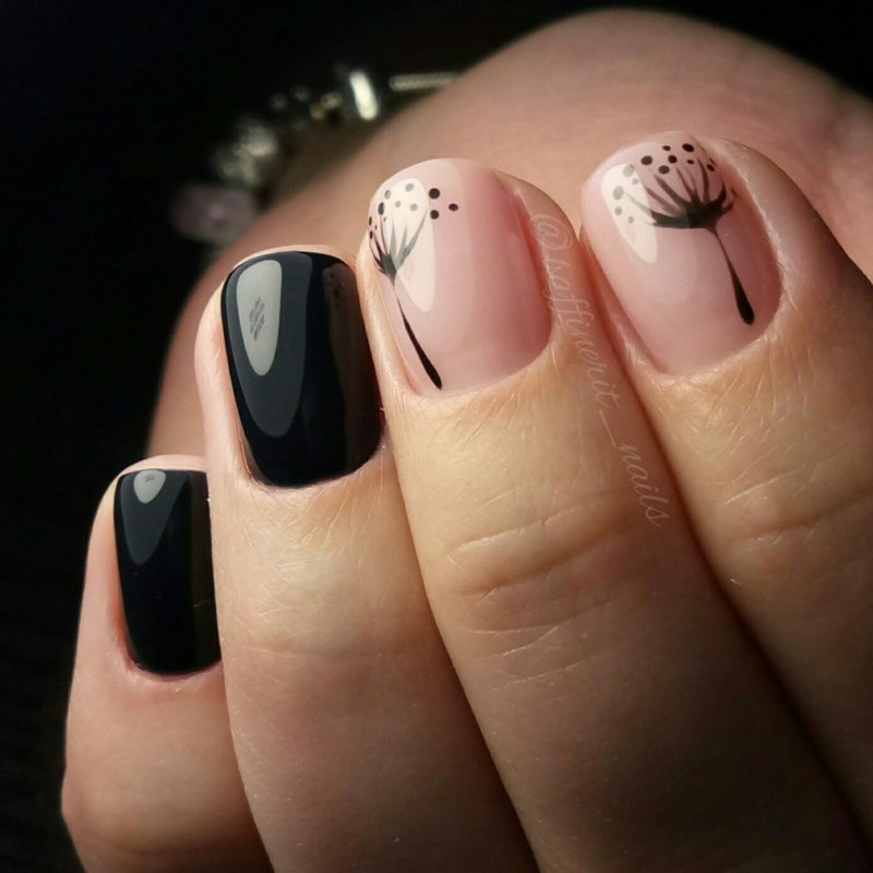 Именно здесь монохром является беспроигрышным вариантом. Хотя модницы привыкали к черному дизайну достаточно сложно, полагая, что он слишком мрачен и не украшает руки. Тем не менее черный лак позволяет создать отличный сдержанный дизайн. И это не только глянцевое покрытие, но и бархатистая матовая текстура, черный френч, черно-белый вариант дизайна.