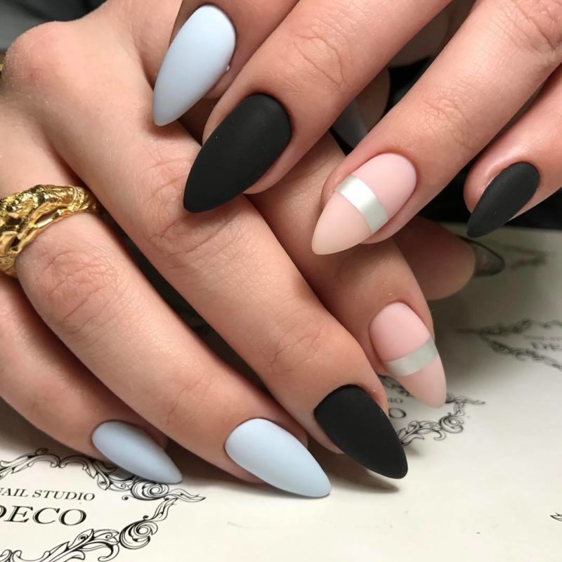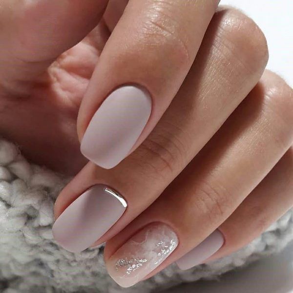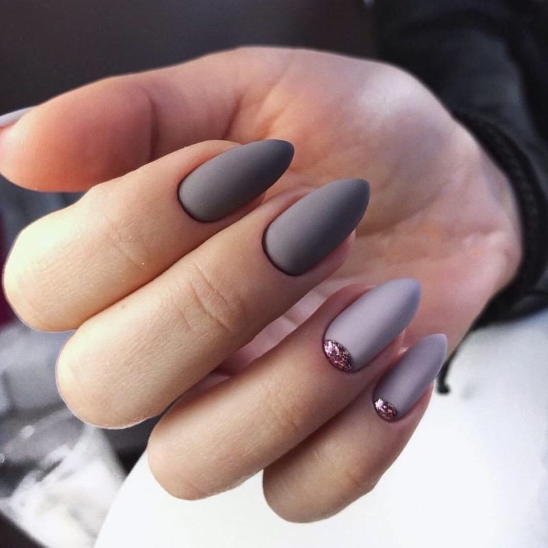 Матовая текстура делает поверхность пластины бархатистой и необычной. Стоит помнить, что она должна быть тщательно подготовлена перед нанесением топа. Матовое покрытие делает заметными все имеющиеся недостатки. Отметим, что матовые ногти — идеальное решение для маникюра в офис.