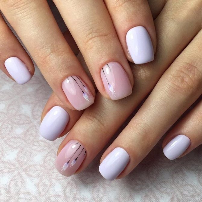 - сдержанность. Это не значит, что в офисном маникюре не должно быть никаких акцентов. Просто оформляйте в особом стиле один пальчик. Этого достаточно, чтобы сделать дизайн уникальным и привлекательным. Тогда вы сможете использовать блестки, стразы и другой активный декор, который, казалось бы, не подходит к офисному стилю.