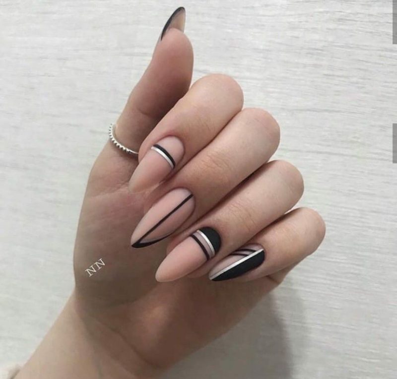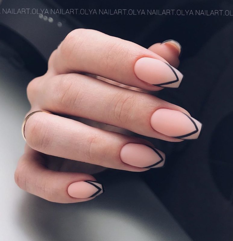 Негативное пространство в дизайне ногтей — это оформление пластины, на которой оставляют непрокрашенные участки. Конечно, они покрыты прозрачной базой для защиты. Это отличное решение для офиса. Негативное пространство можно удачно сочетать с геометрией или лунным маникюром.