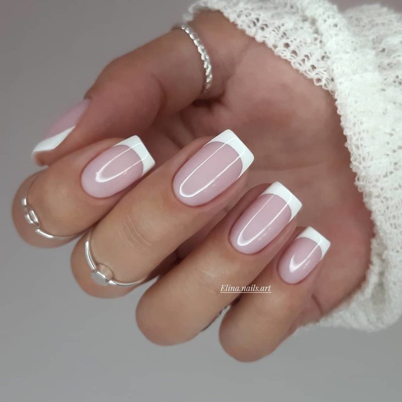 Элегантный деловой маникюр с френчем можно сделать и просто изменив форму улыбки — волну, твист, косой френч или шеврон. Вариантов, как видите, много.