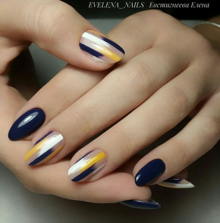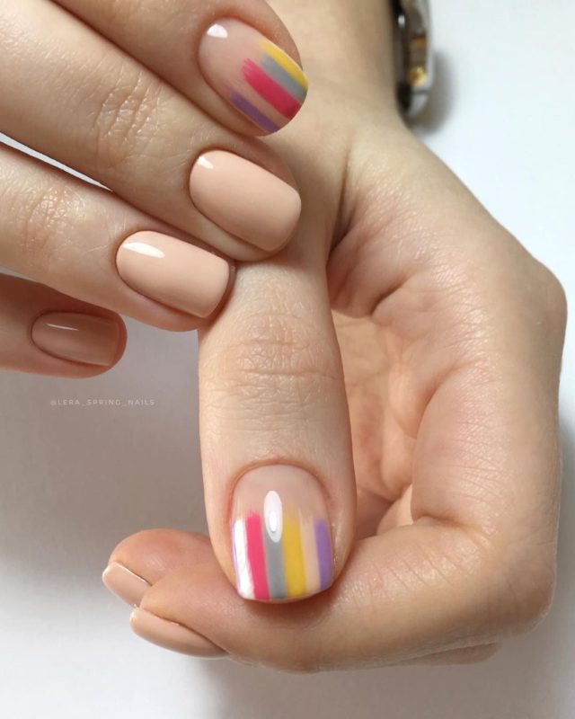 Совет: база может быть прозрачной, а мазки кистью разного цвета для каждого пальчика.