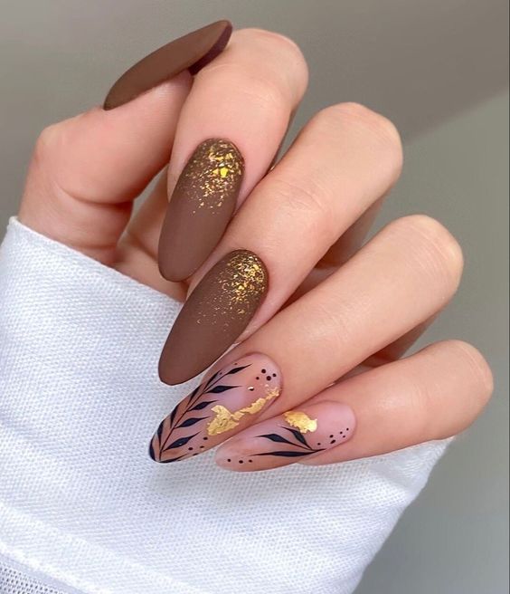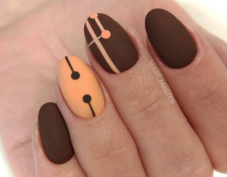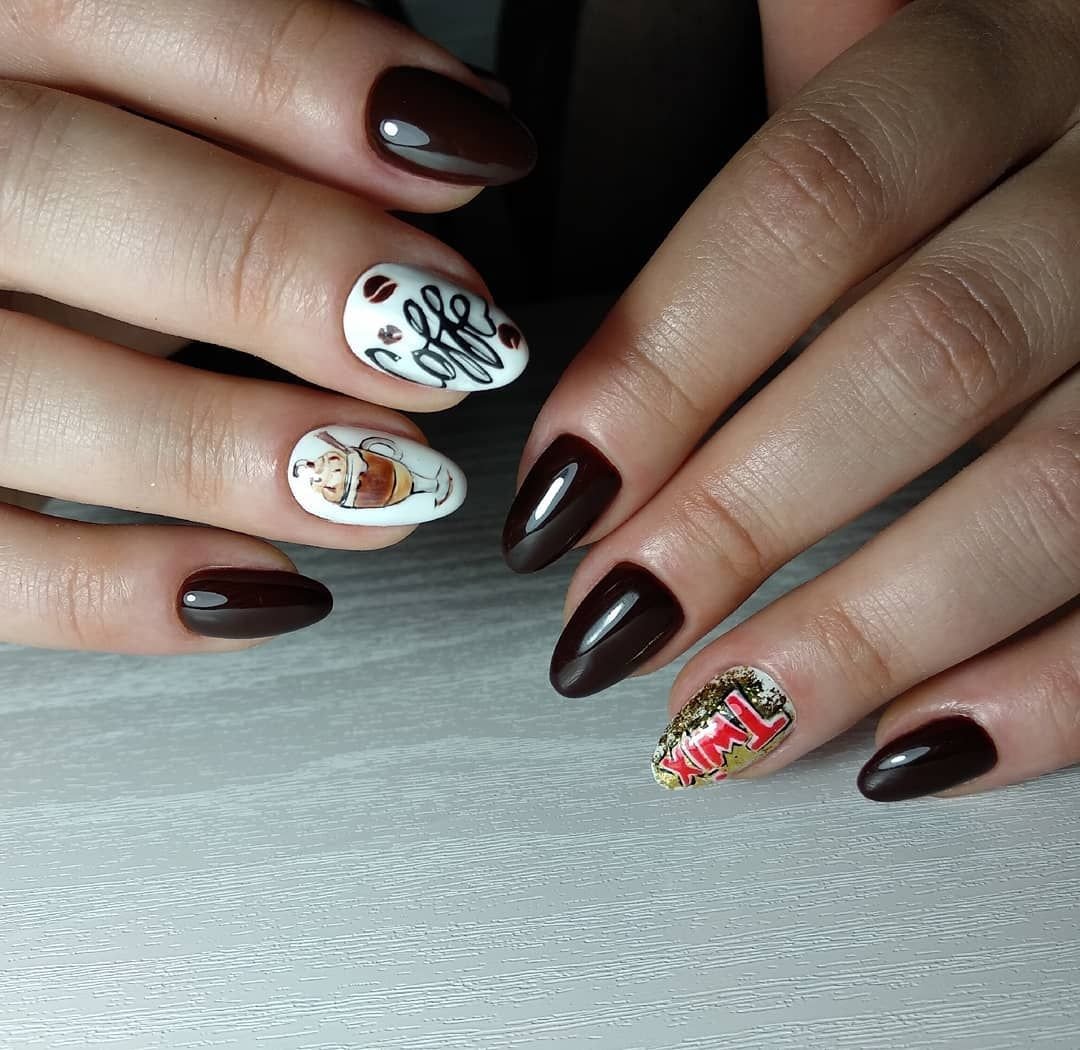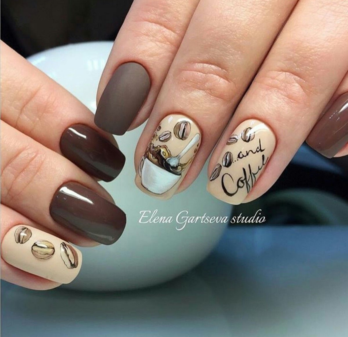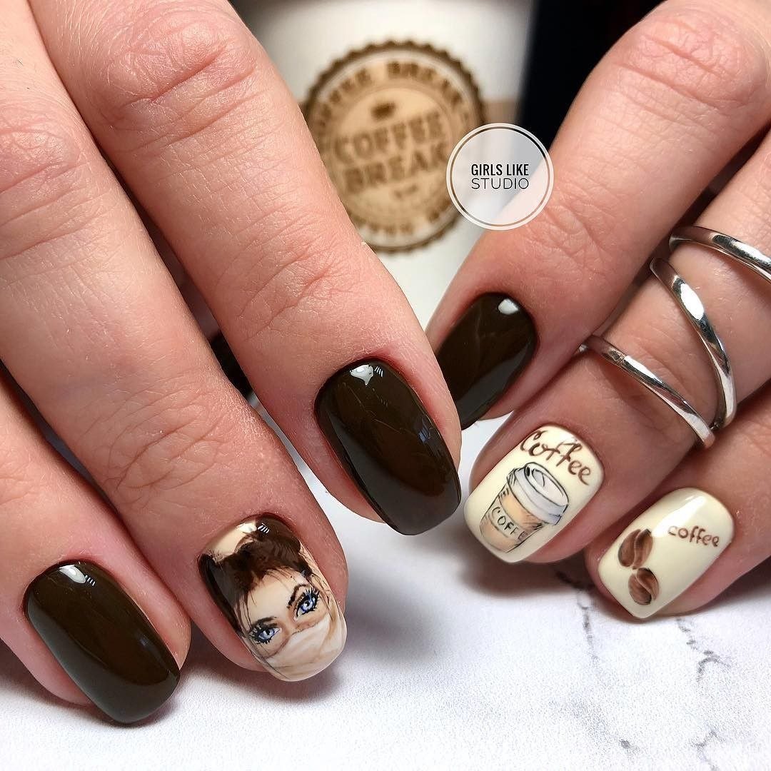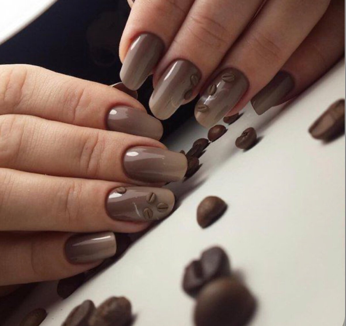 Все оттенки коричневого, безусловно, популярны осенью. Но мы говорим о новом тренде. Не так давно в Тик Токе завирусился тренд — кофейный макияж. Естественно, модницы дополняют его подобным же маникюром. Какой он, нейл-арт в кофейном стиле? Это все оттенки коричневого, красивые разводы и кофейные зернышки на ногтях.