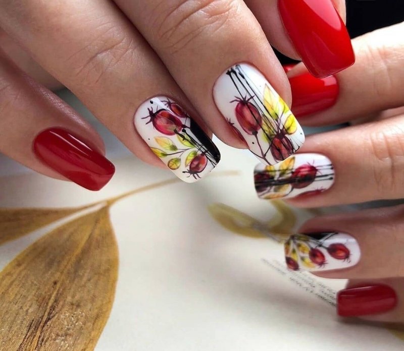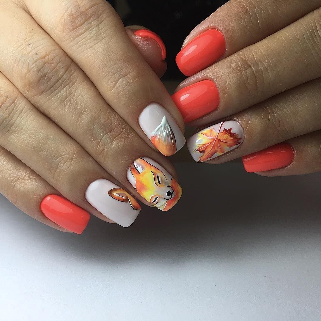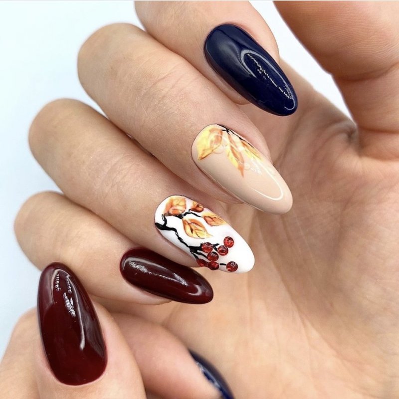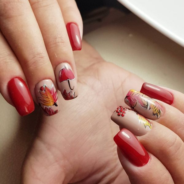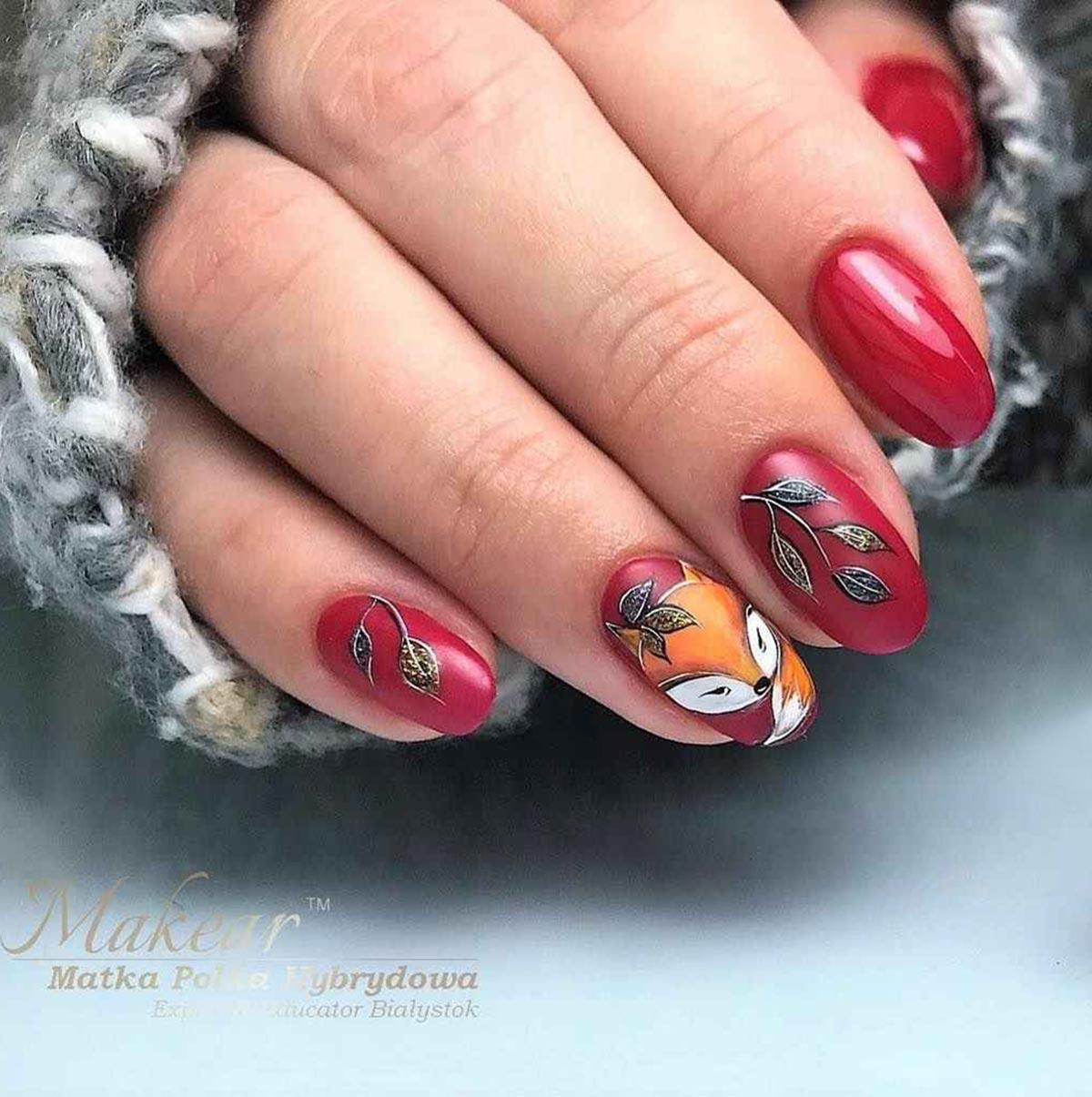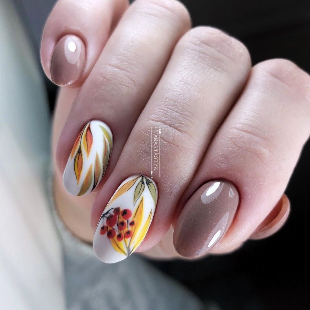 Совет: актуальной тенденцией сезона 2026 в осеннем маникюре являются рисунки — листья, рябина, животные принты.
