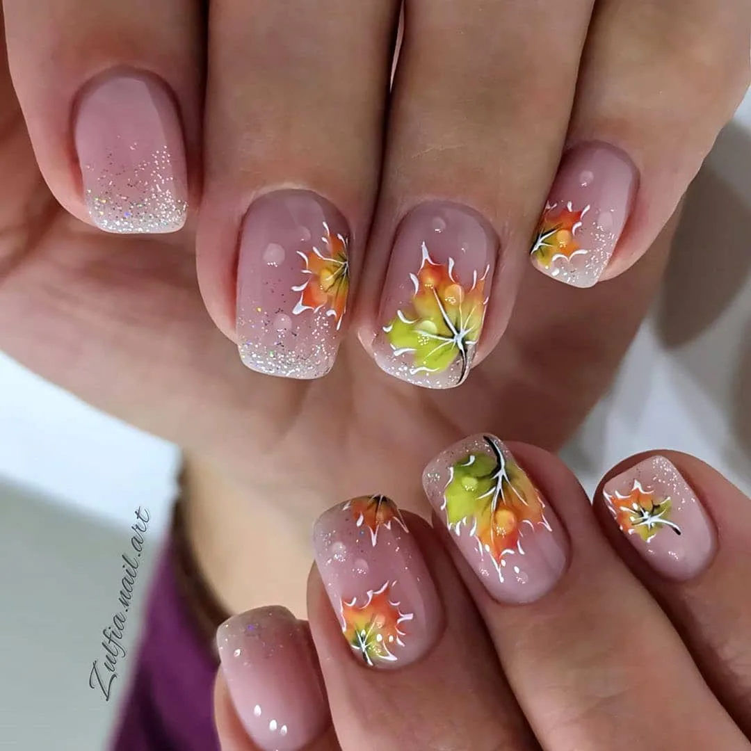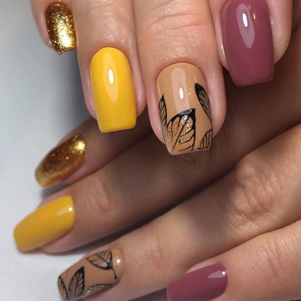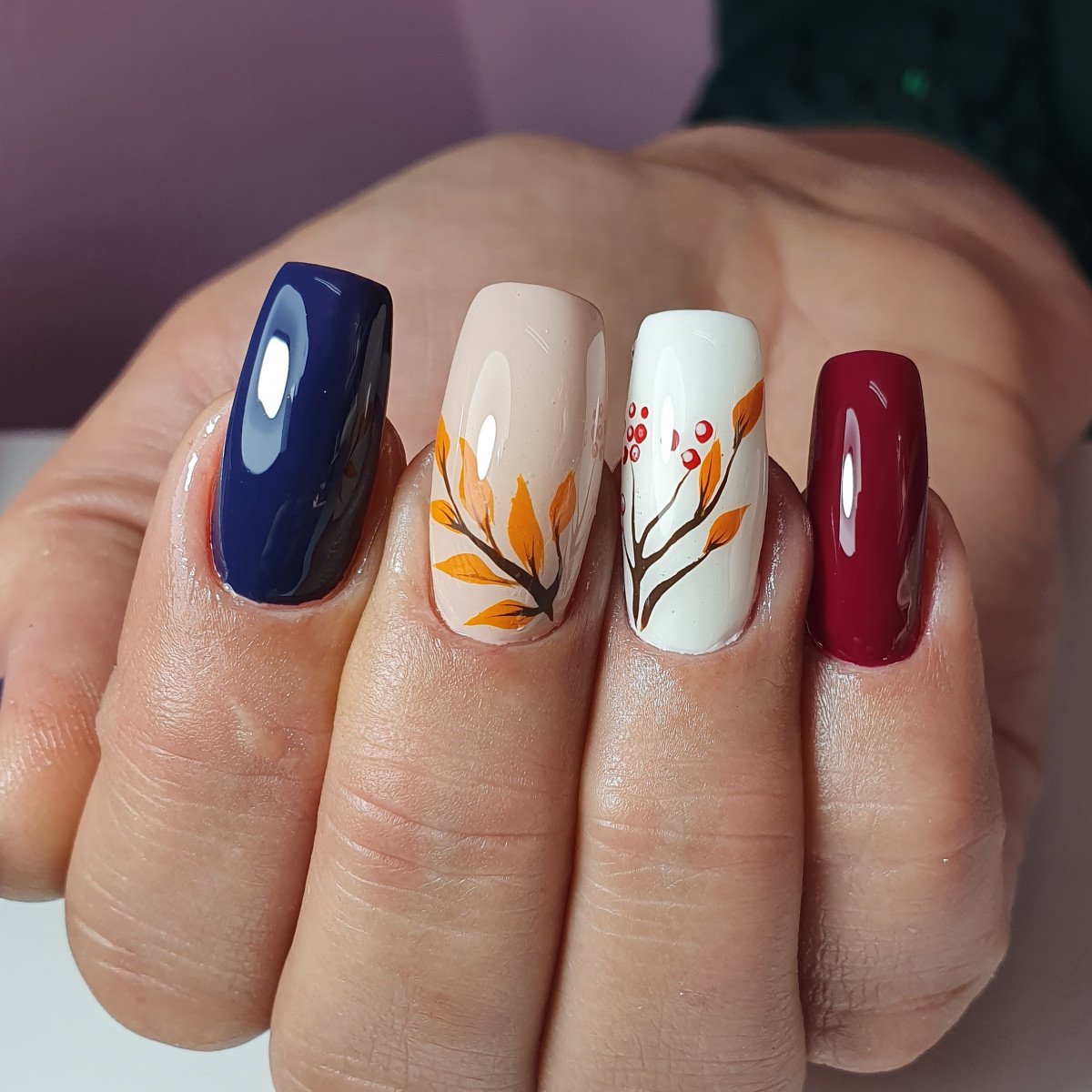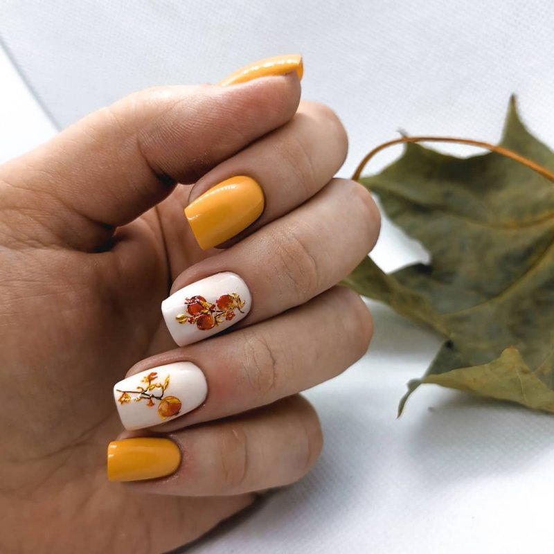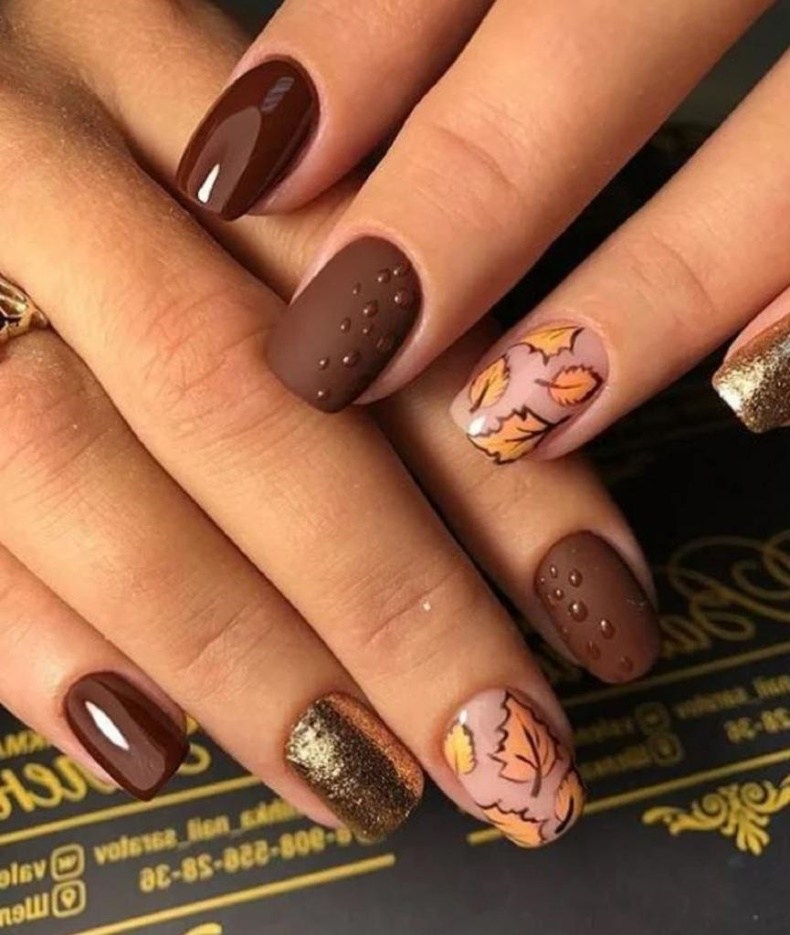 Совет: актуальной тенденцией сезона 2026 в осеннем маникюре являются рисунки — листья, рябина, животные принты.