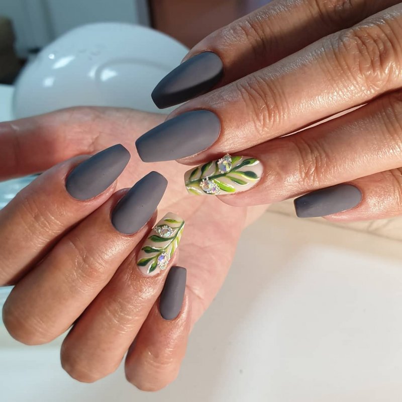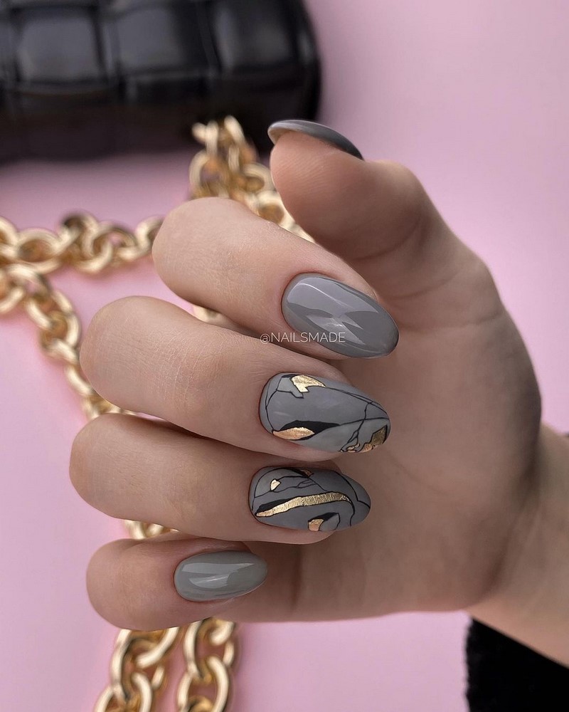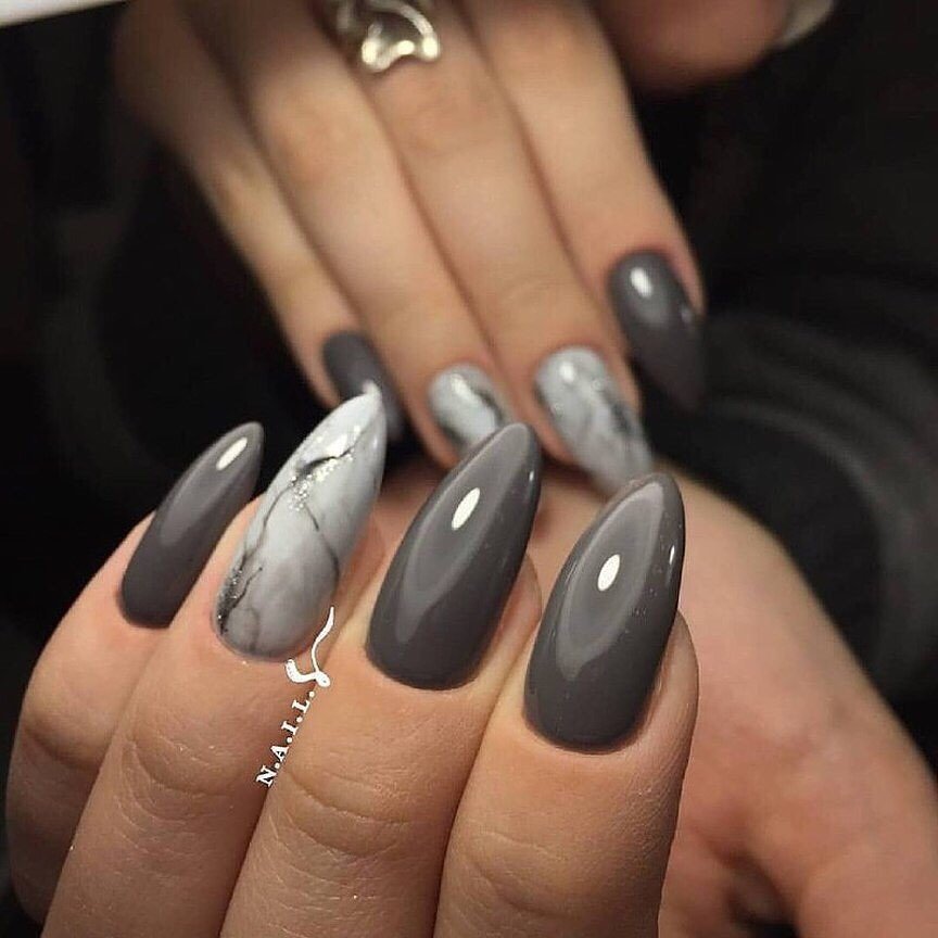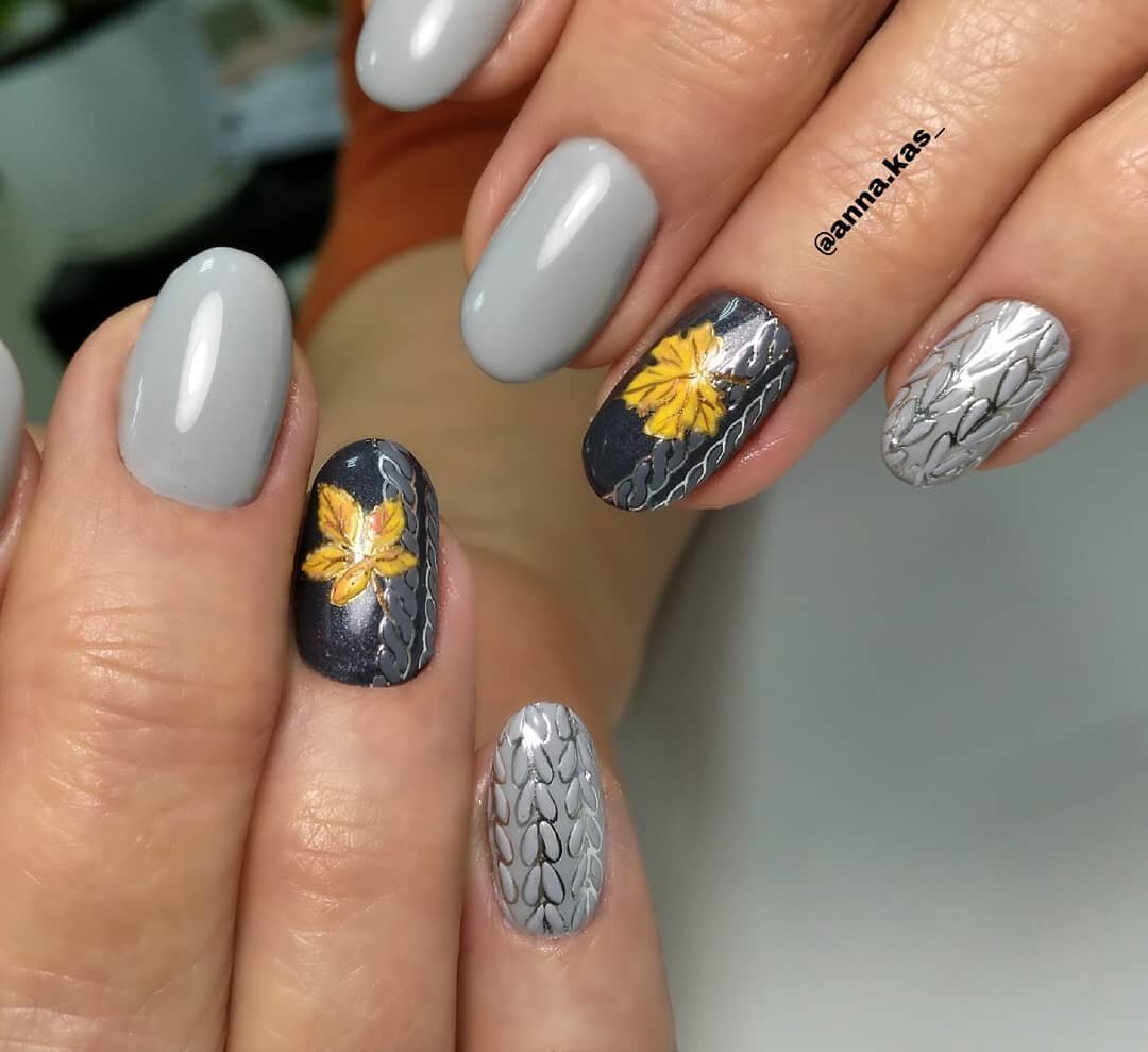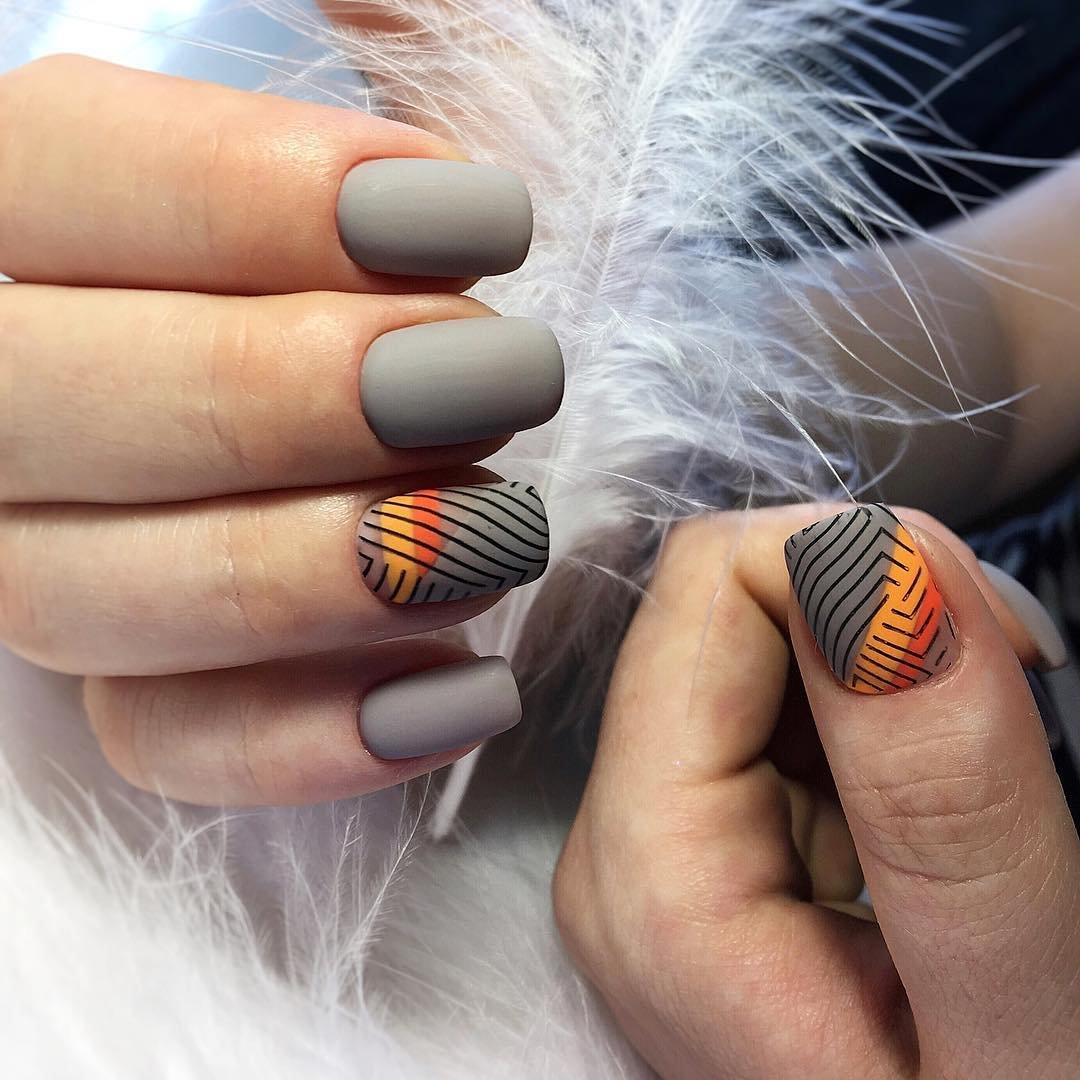 Считаете этот цвет скучным и неподходящим для маникюра? Очень зря. Палитра серого включает очень интересные оттенки. Кроме того, серый уживается практически с любым другим цветом. Он сможет уравновесить самый активный осенний цвет — от ярко-оранжевого до золотого.