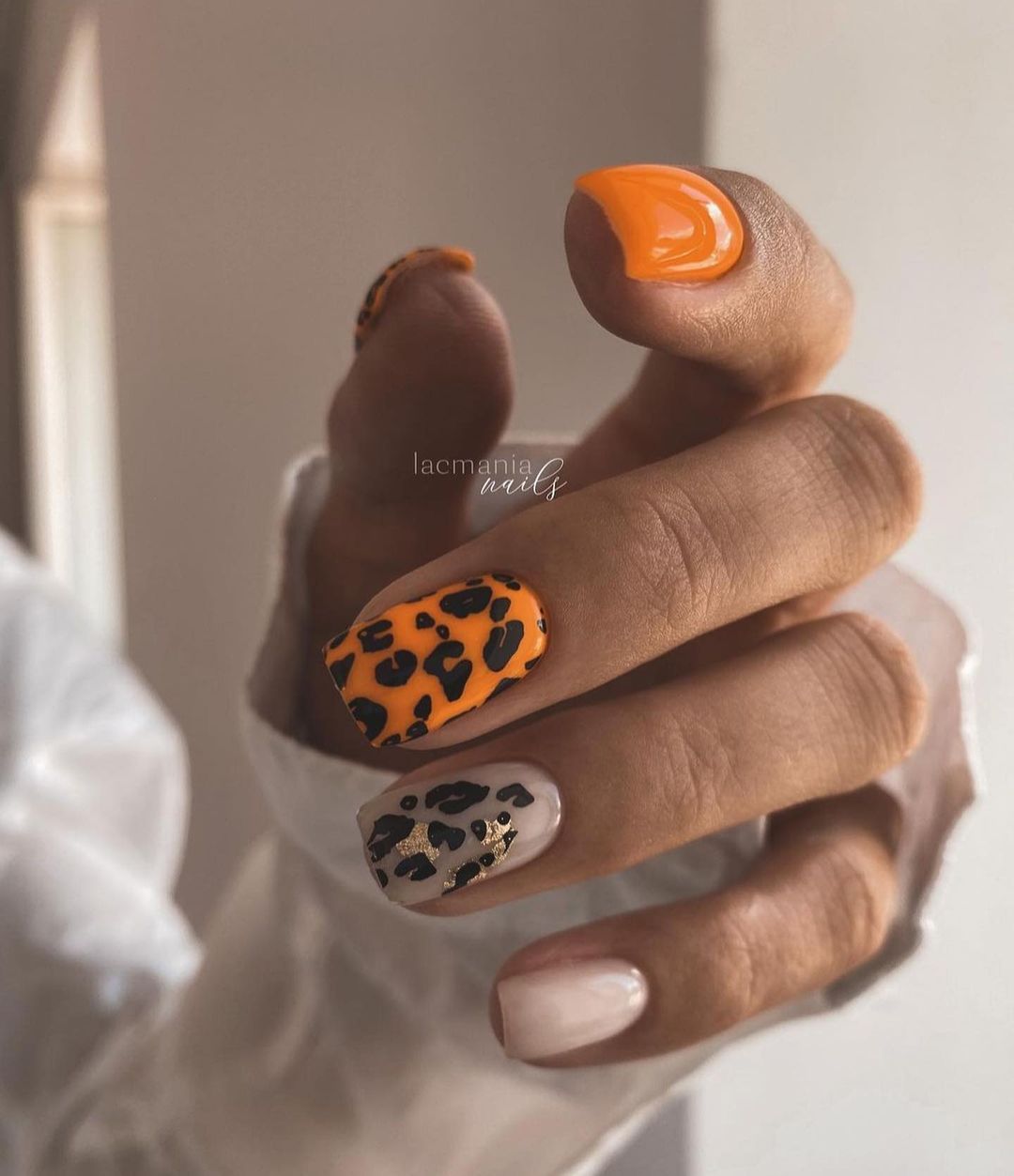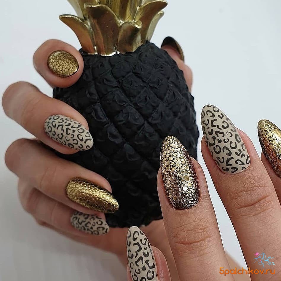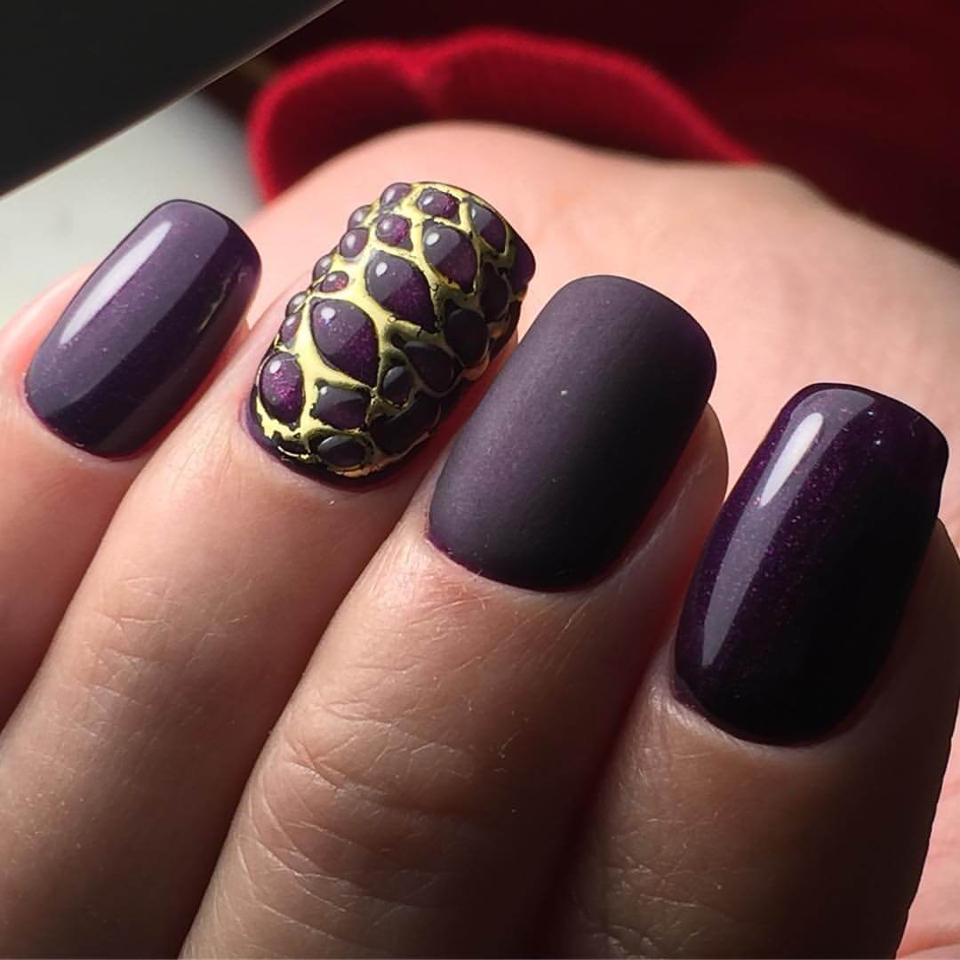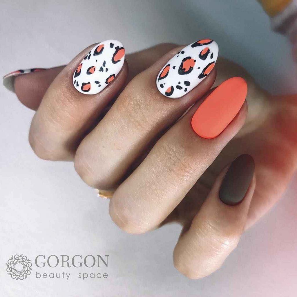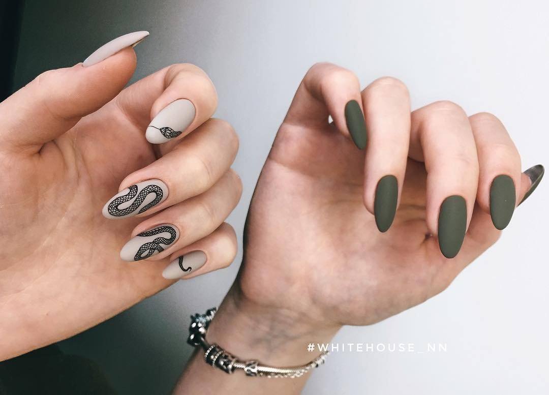 Модный и актуальный прием в осеннем маникюре. Для того, чтобы приглушить интенсивность такого рисунка, используют матовую базу. Вы можете создать на ногтях зебру, леопарда, тигра или змеиный принт. Но помните, что такой дизайн обязывает — украшения и образ в целом должны быть довольно спокойными. Достаточно одного активного акцента.