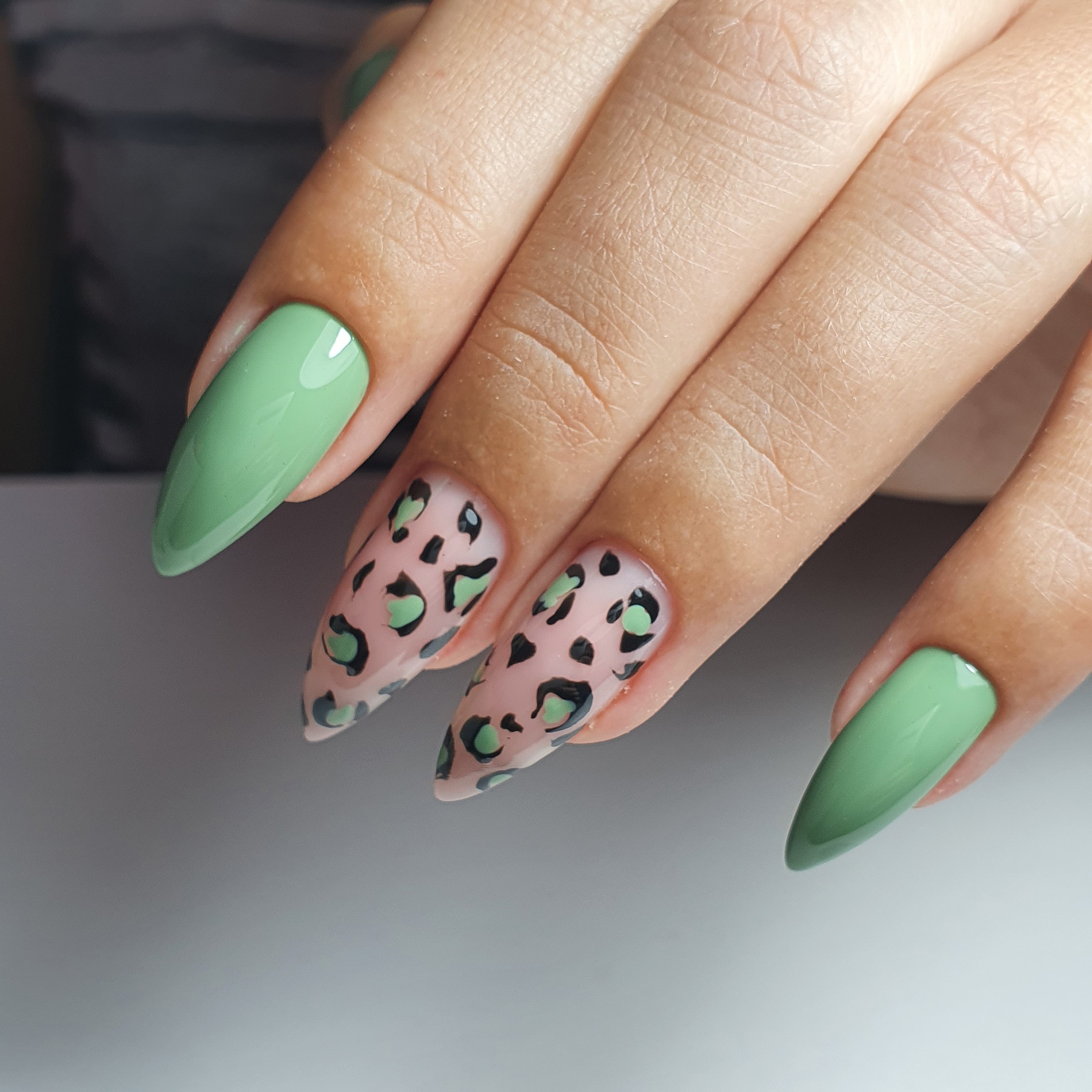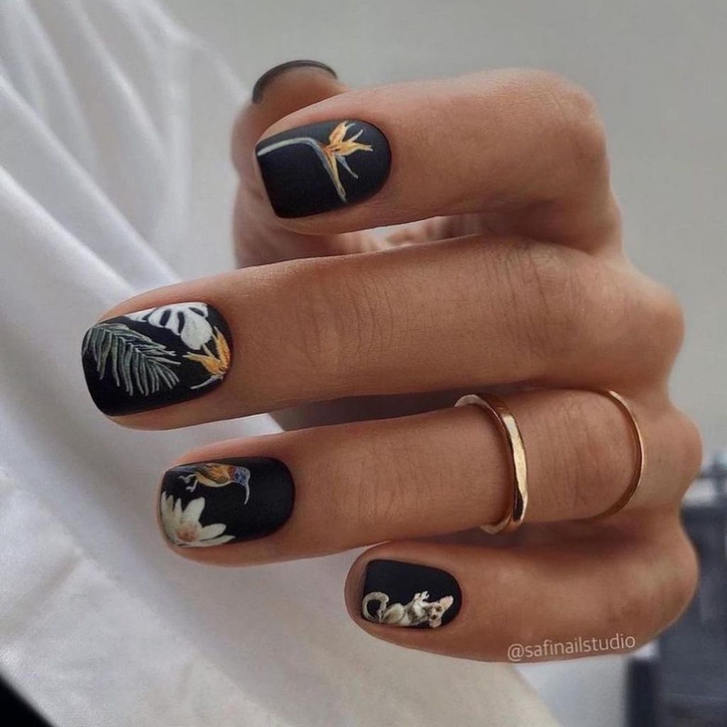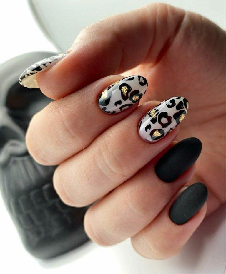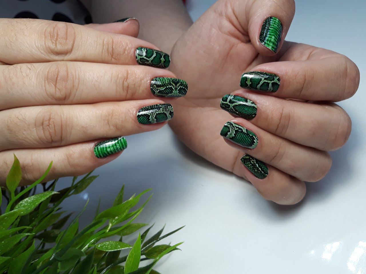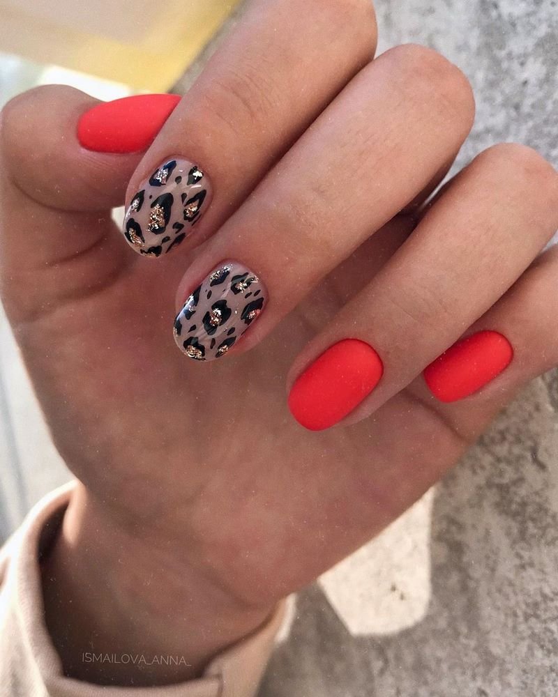Модный и актуальный прием в осеннем маникюре. Для того, чтобы приглушить интенсивность такого рисунка, используют матовую базу. Вы можете создать на ногтях зебру, леопарда, тигра или змеиный принт. Но помните, что такой дизайн обязывает — украшения и образ в целом должны быть довольно спокойными. Достаточно одного активного акцента.