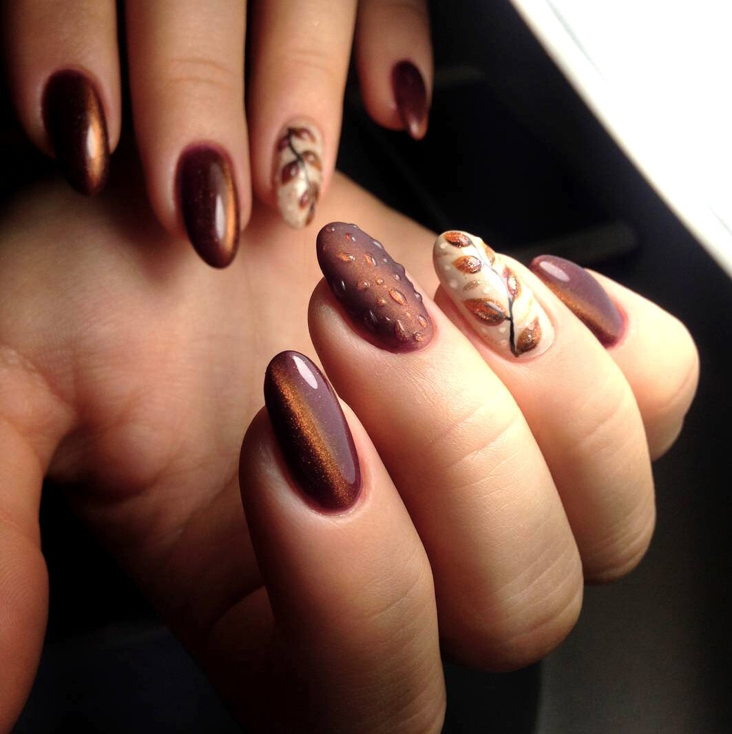 Рисунки — простой и доступный способ сделать дизайн уникальным. И если летом актуальны морская тематика, бабочки и горошек, то в осеннем маникюре совсем иные фавориты. Осенью актуальны рисунки рябины, листьев дуба, клена, березы и других привычных деревьев.