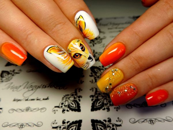 Совет: если хотите сделать дизайн с рисунком, лучше декорировать один или два ноготка на руке.