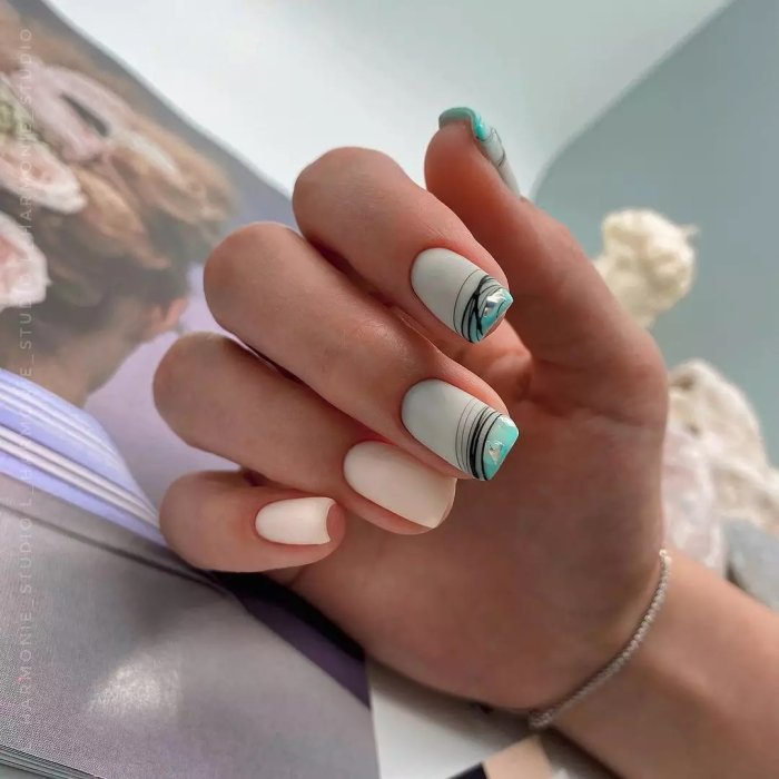 Если говорить о дополнительном декоре, выбирайте сдержанность. Не стоит считать в маникюре одновременно и яркий цвет лака, и блеск камней или другой интенсивный дизайн.