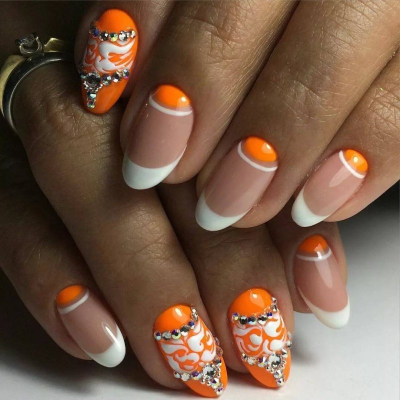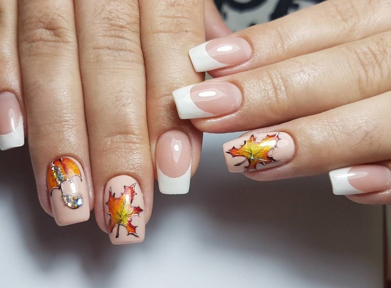 Френч — классика в маникюре, который мастера пытаются разнообразить в угоду модницам. Вы можете сделать классический вариант французского дизайна и дополнить его рисунком, стразами и другим декором. Или выбрать другой вариант — цветной френч в актуальных оттенках осени.