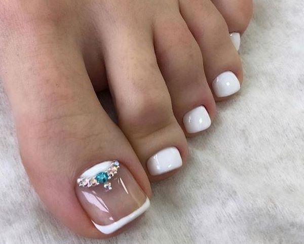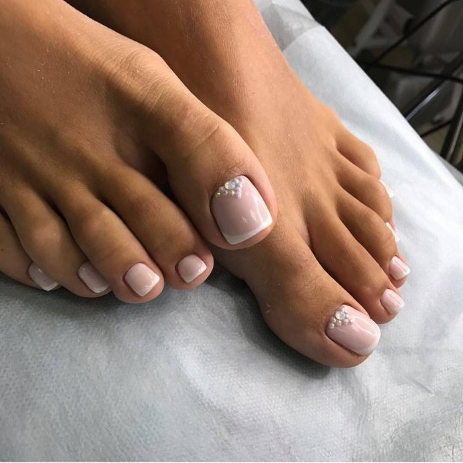 Педикюр френч со стразами
