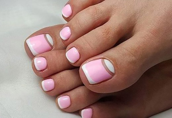 • если ноготки на ногах имеют дефекты и неровности, то френч педикюр их полностью закроет собой;