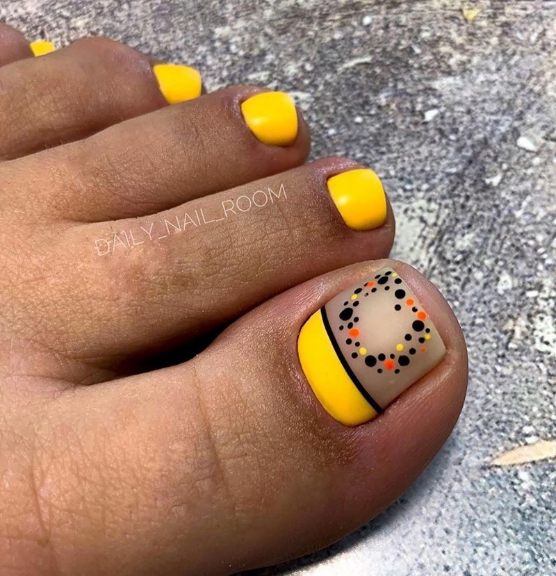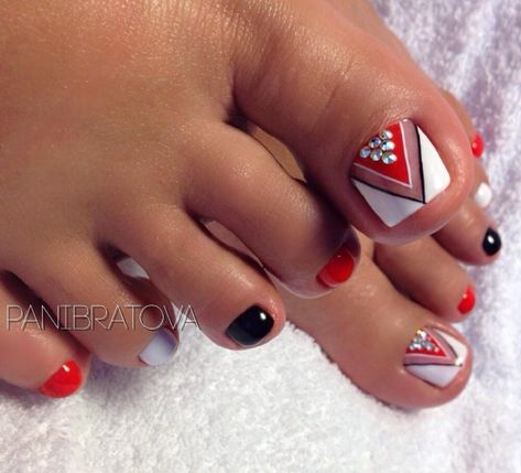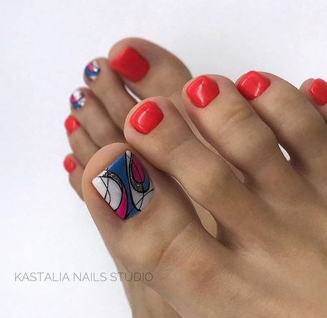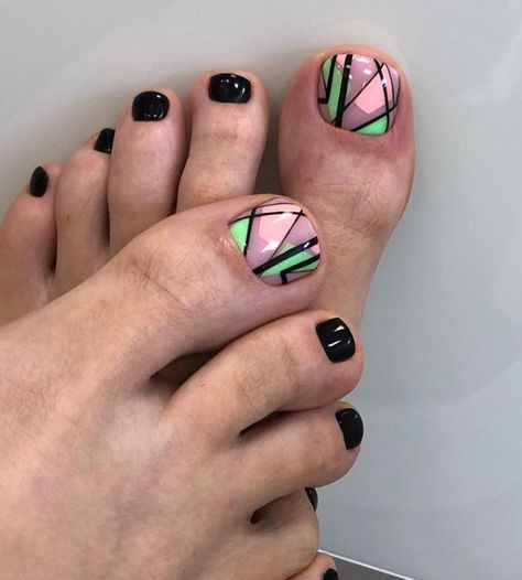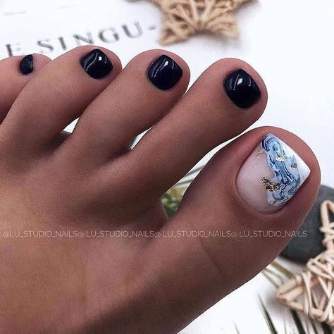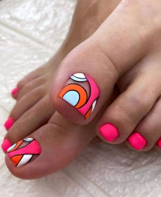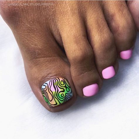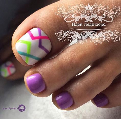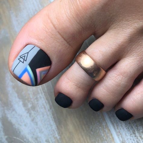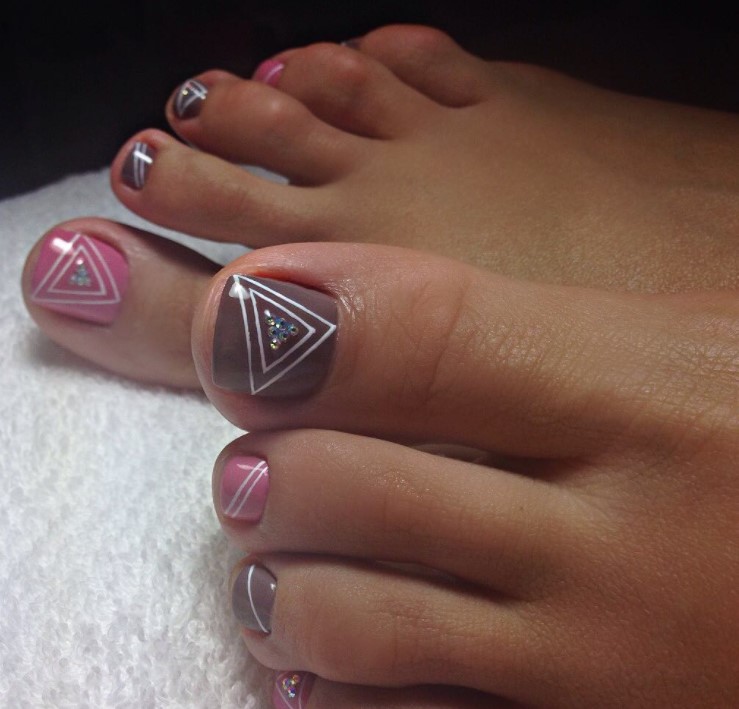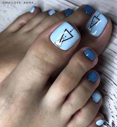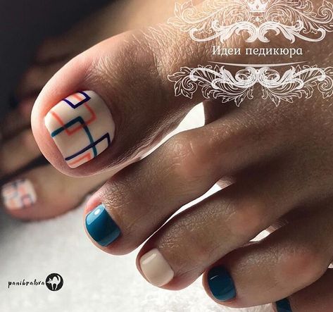 Совет: чтобы не перегружать педикюр яркими акцентами, остановитесь только на большом пальце. Классика — геометрия, которая выгодно подчёркивает естественную форму ногтя, при этом, делая ее более аккуратной, вытягивает визуально.