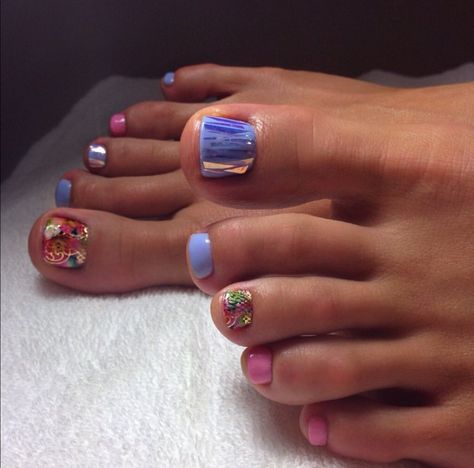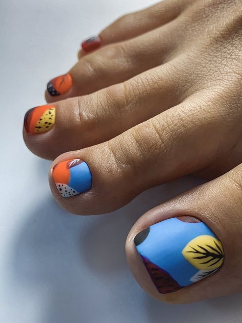 Но современные тенденции диктуют быть смелыми. А это значит, что педикюр и маникюр могут быть абсолютно разными. Этот вариант для уверенных в себе модниц. Что касается формы ноготков на ногтях, здесь важно ориентироваться на практичность. И обязательно учитывать особенности природной формы. Но, как правило, для педикюра выбирают форму мягкого квадрата. Летом можно сделать дизайн и с квадратной формой ногтей, но учитывайте, что кончики пластины могут цепляться за окружающие предметы.