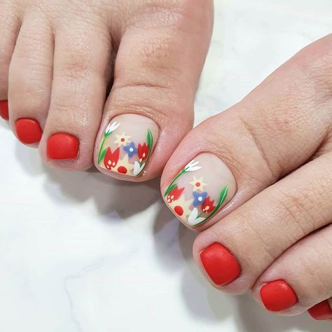 С наступлением теплых дней все большую актуальность приобретает цветочный педикюр. Но в этом сезоне стоит отказаться от акварельных цветов или классически наклеек. Выбирайте иные варианты — мелкие цветочки на темном фоне, еле заметные листья, веточки или цветы. Летом актуальны изображение ярких сочных фруктов.