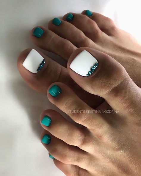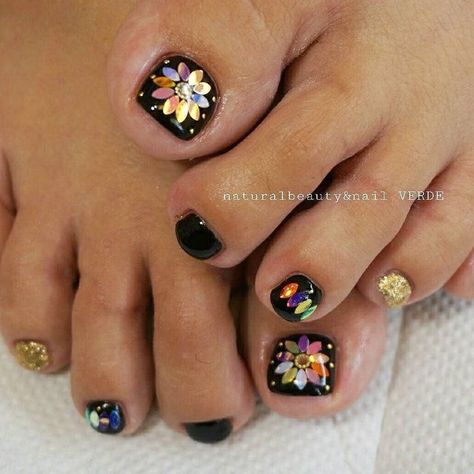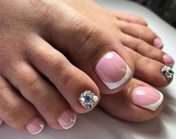 Несмотря на практичность, яркие камни любимы модницами. С ними получается создавать яркий и необычный педикюр. Но такой дизайн носится не слишком долго, поэтому рекомендуется делать его исключительно на праздник или торжество. Выкладывать рисунок из страз лучше ближе к лунке. Хорошо, если вы учтете особенности строение той обуви, которую планируете носить с таким педикюром и разместите рисунок на самой безопасной зоне. Кроме того, важно нанести несколько слоев закрепляющего топа. Рекомендуем перед этим провести тест на зацепки и если они есть, убрать дефекты с помощью полирующего бафа.