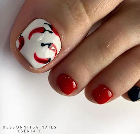Важно: недостаток лунного дизайна в том, что ногтевая пластина быстро отрастает. Тем самым декор медленно съезжает на середину ногтя. Но проблему легко решить — просто почаще обновляйте дизайн педикюра.