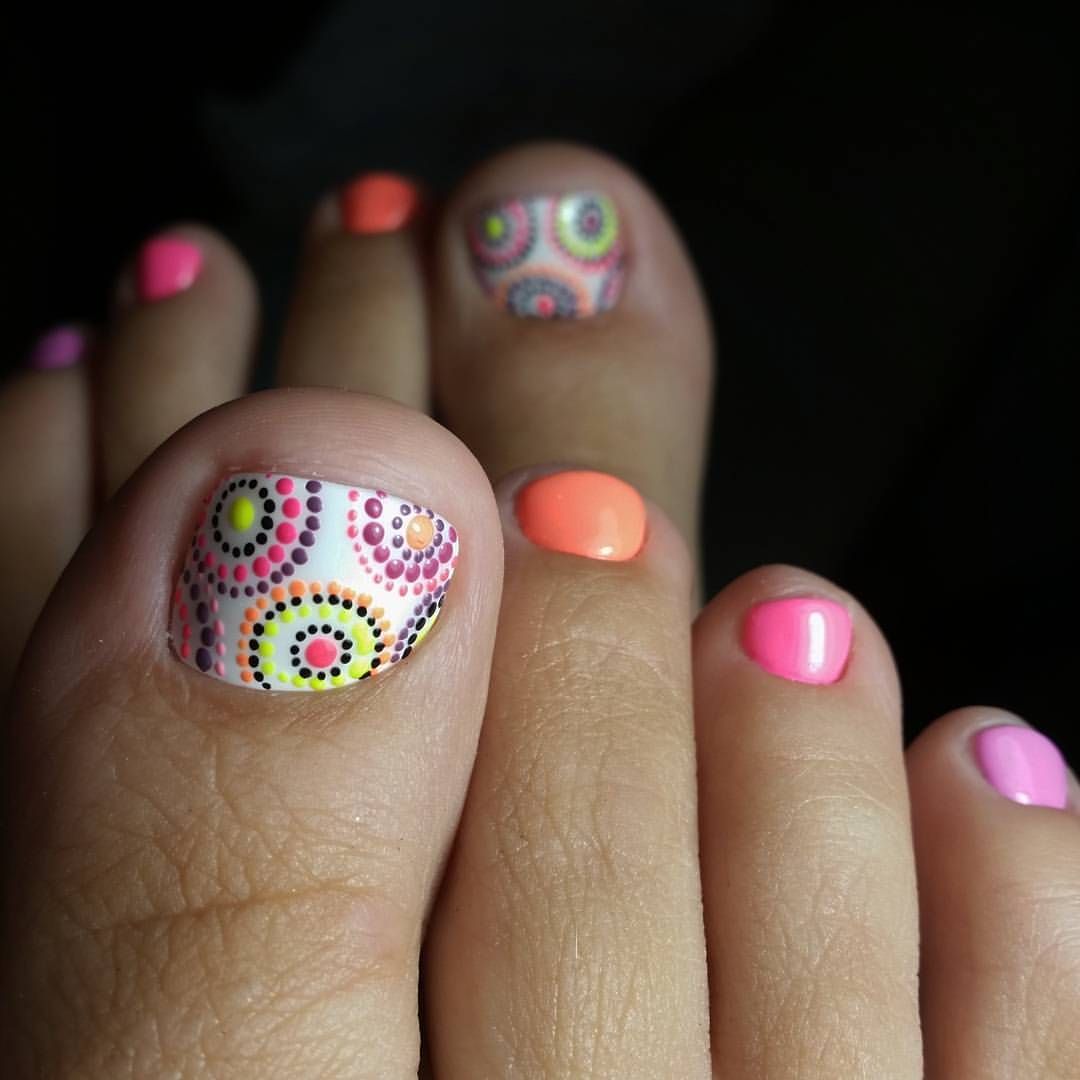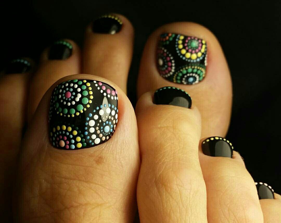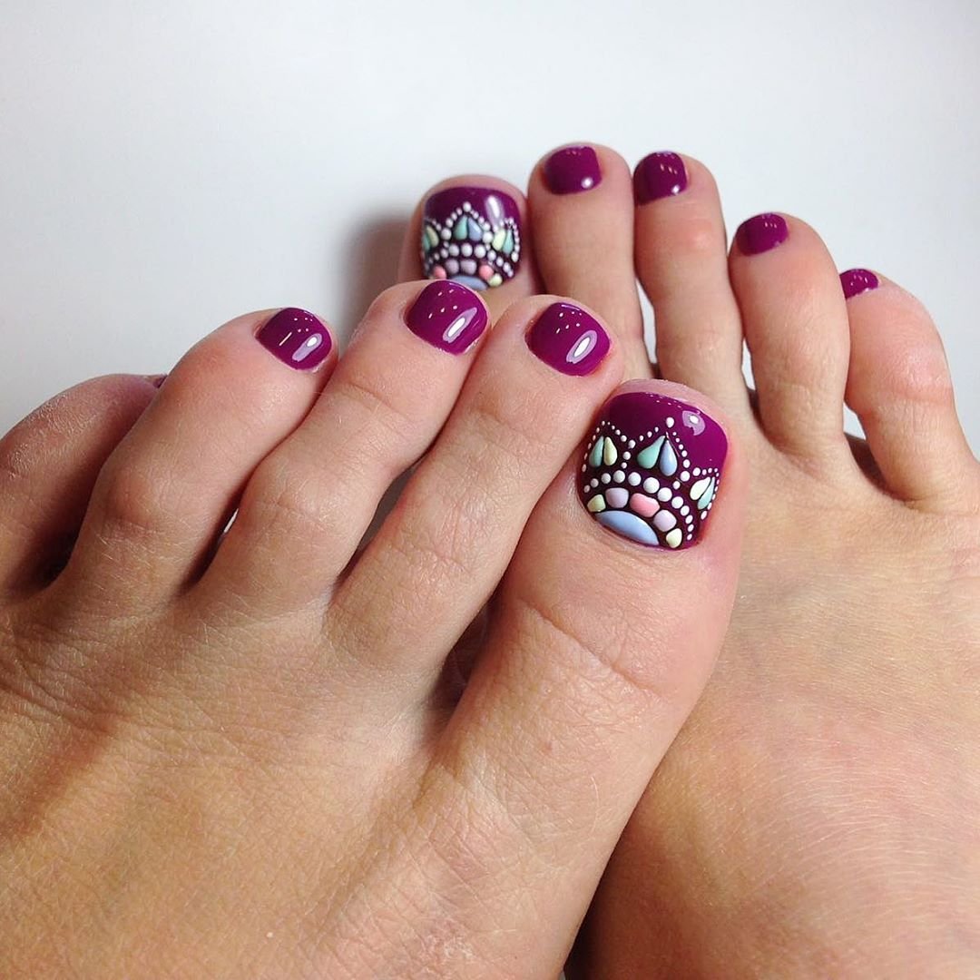 - начните с выбора базового оттенка. Педикюр может и должен быть ярким и сочным. Если вы решите сделать его во французском стиле, подумайте над тем, чтобы и френч был цветным;