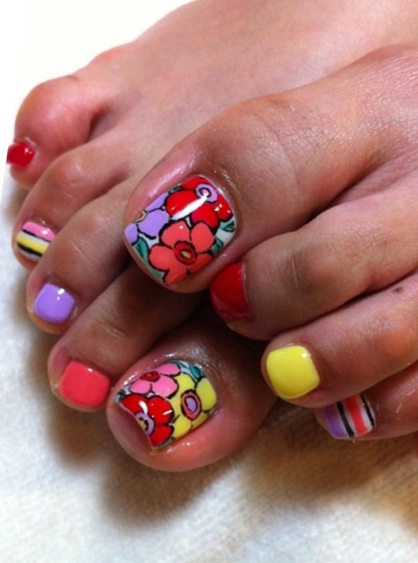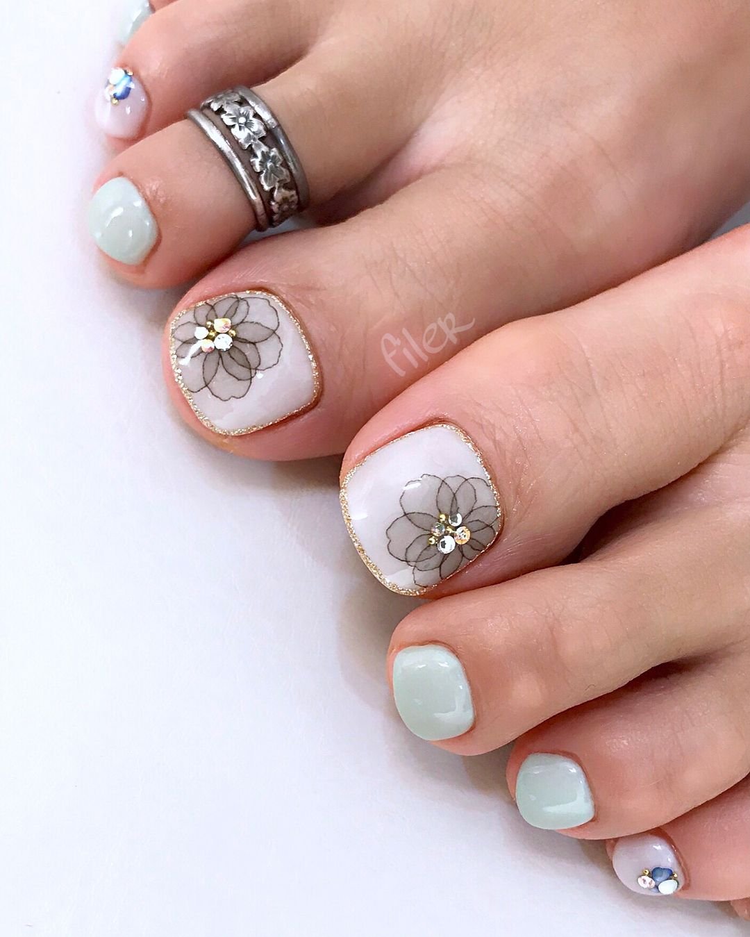 Это, конечно, не все популярные варианты цветов, которые вы можете использовать для создания стильного педикюра с цветами. Актуален в этом сезоне нюдовый, серый, коричневый, персиковый и другие оттенки. Чаще всего модницы подбирают цвет под маникюр, но если вы не планируете раздеваться, то можете сделать педикюр в тех оттенках, каких пожелаете. Кроме того, новые тенденции нейл-арта уже не требуют строгого соответствия педикюра и маникюра ни по стилю, ни по цвету базы. Главное, чтобы вам было комфортно в созданном образе.