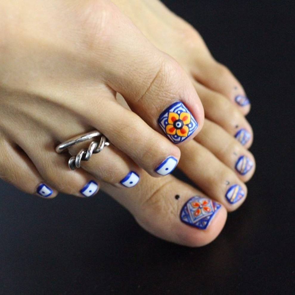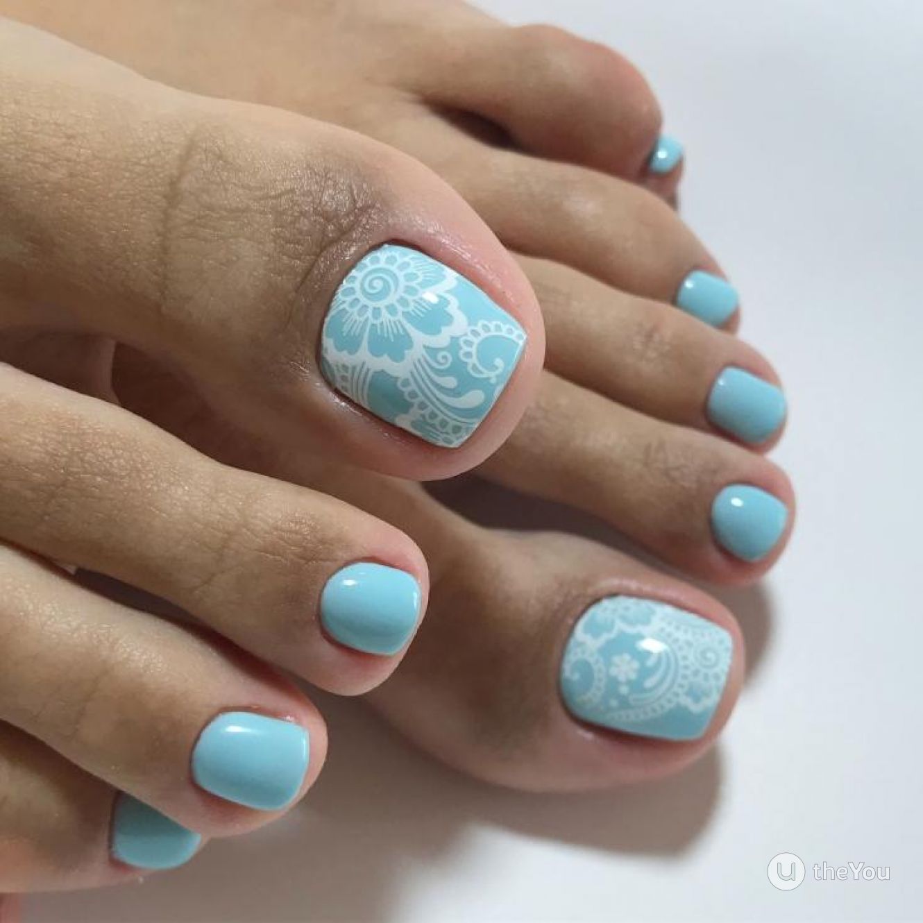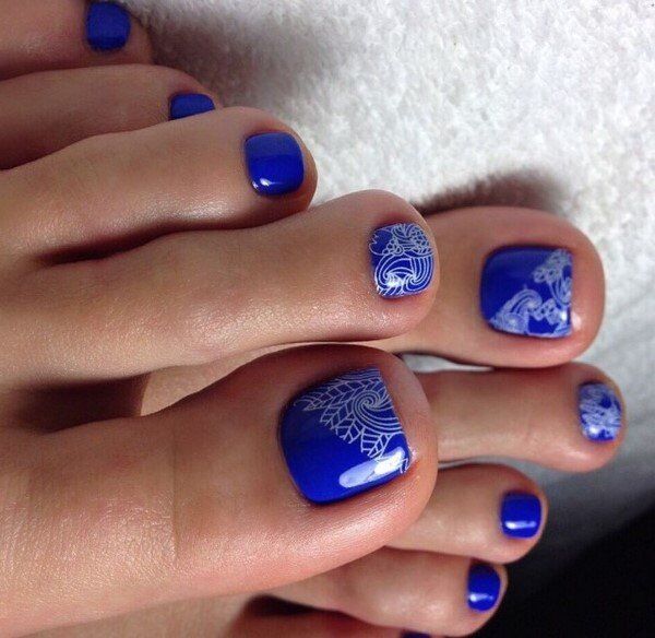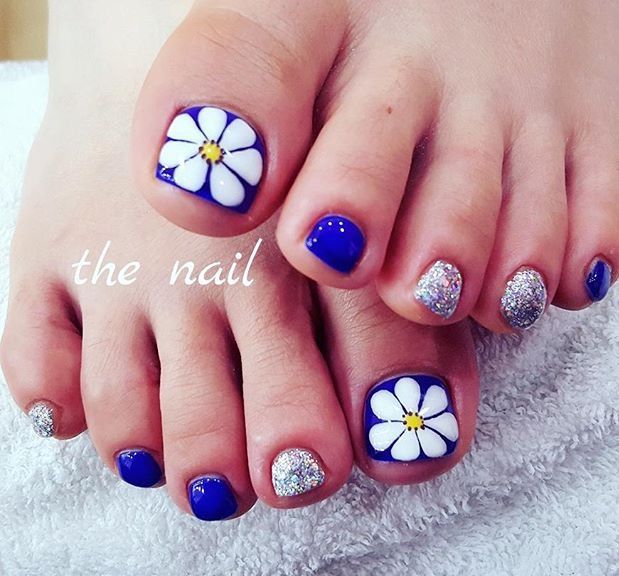 Синяя палитра подходит для нежных и романтичных, но при этом деловых дам. Как и розовая она довольна разнообразна и позволяет создавать самые разные варианты дизайна с цветами. Темный синий подходит для контрастных цветов белого, серебристого и золотого оттенков. А голубая гамма отлично смотрится с черными и другими темными цветами. Один из трендов весны 2023 — педикюр с мелкими цветочками. Используйте его по максимуму, ведь новые веяния так скоротечны и непостоянны.