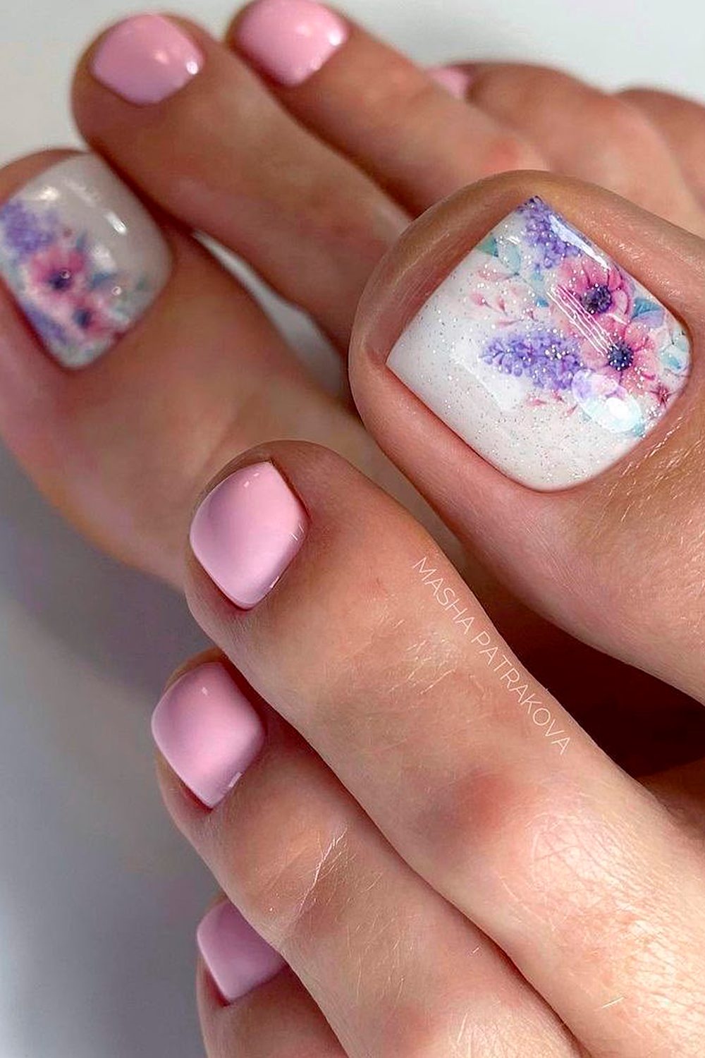 Педикюр с цветами 2023: актуальные вариант дизайна