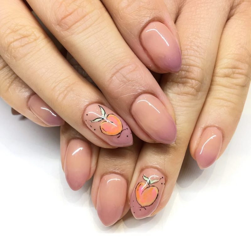 Рисунки на персиковых ногтях