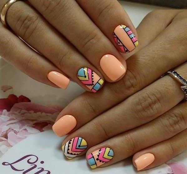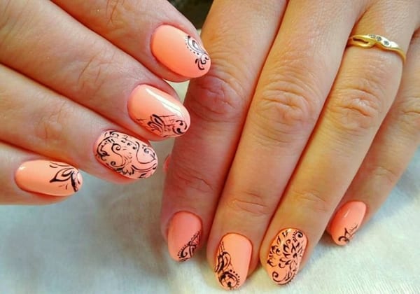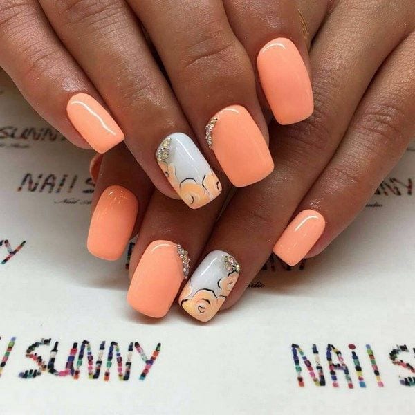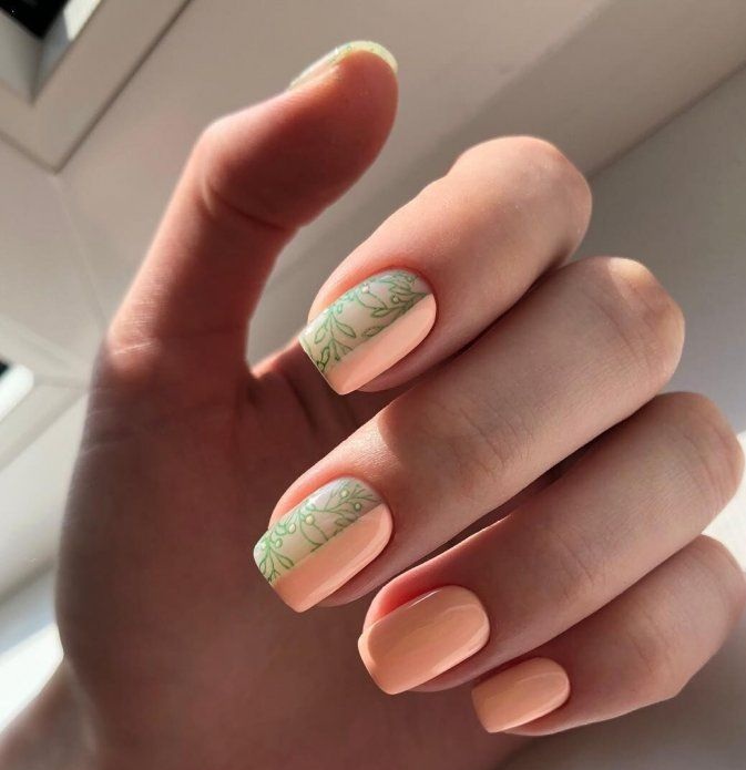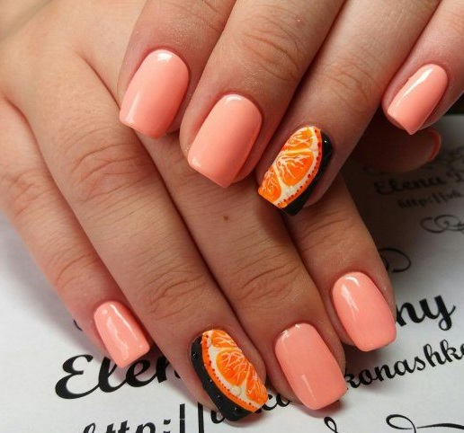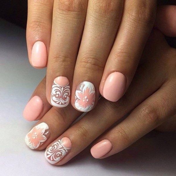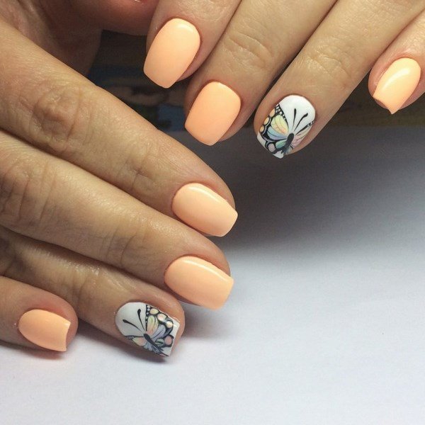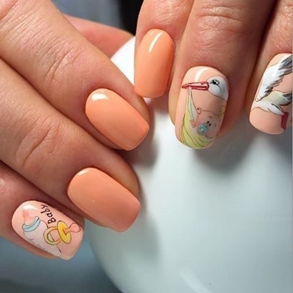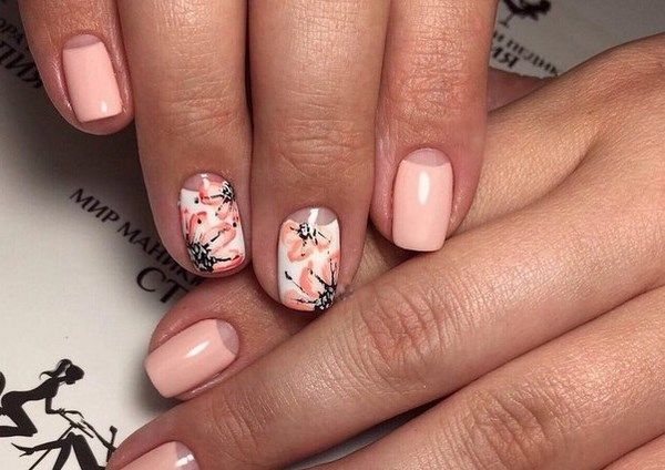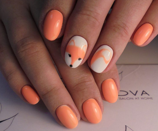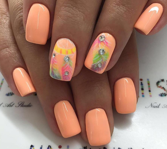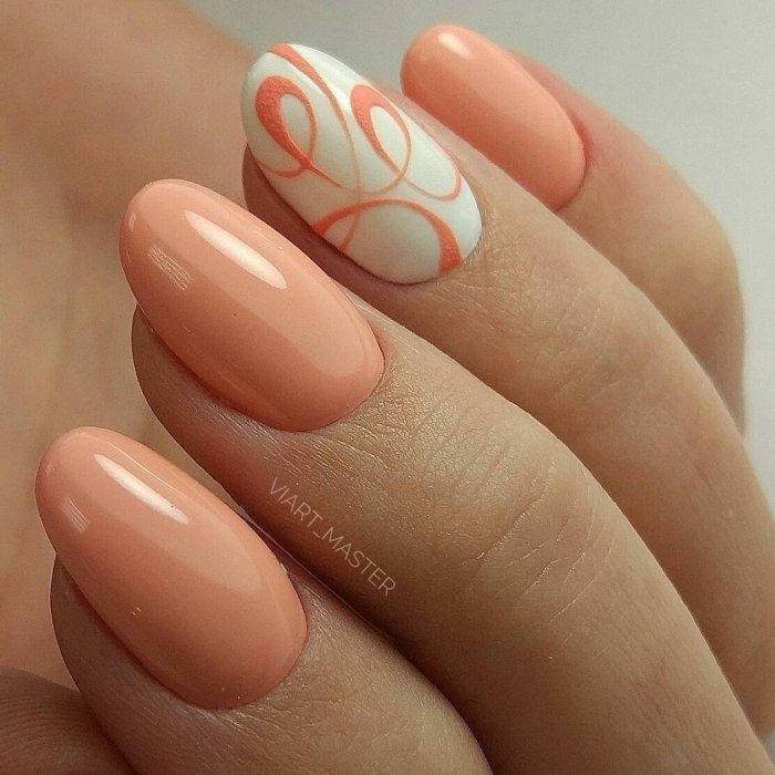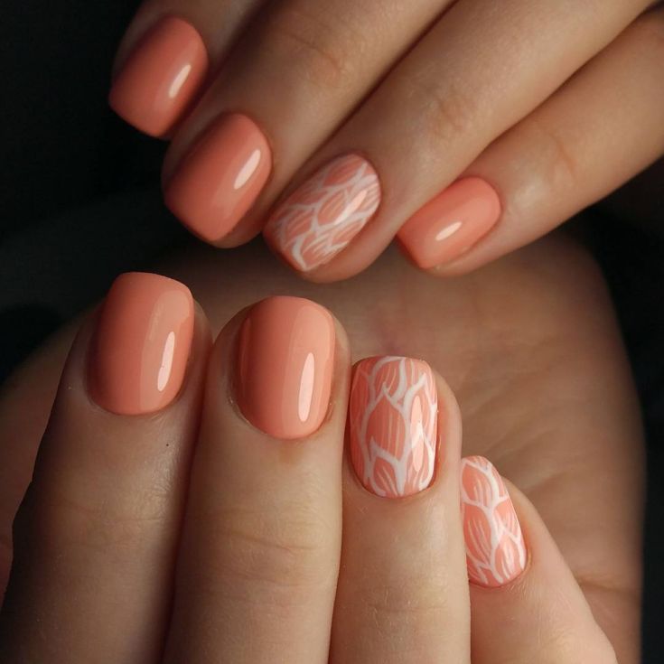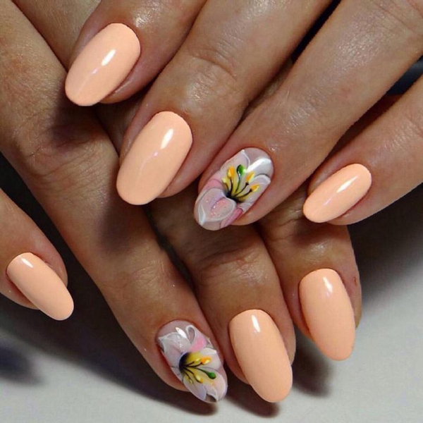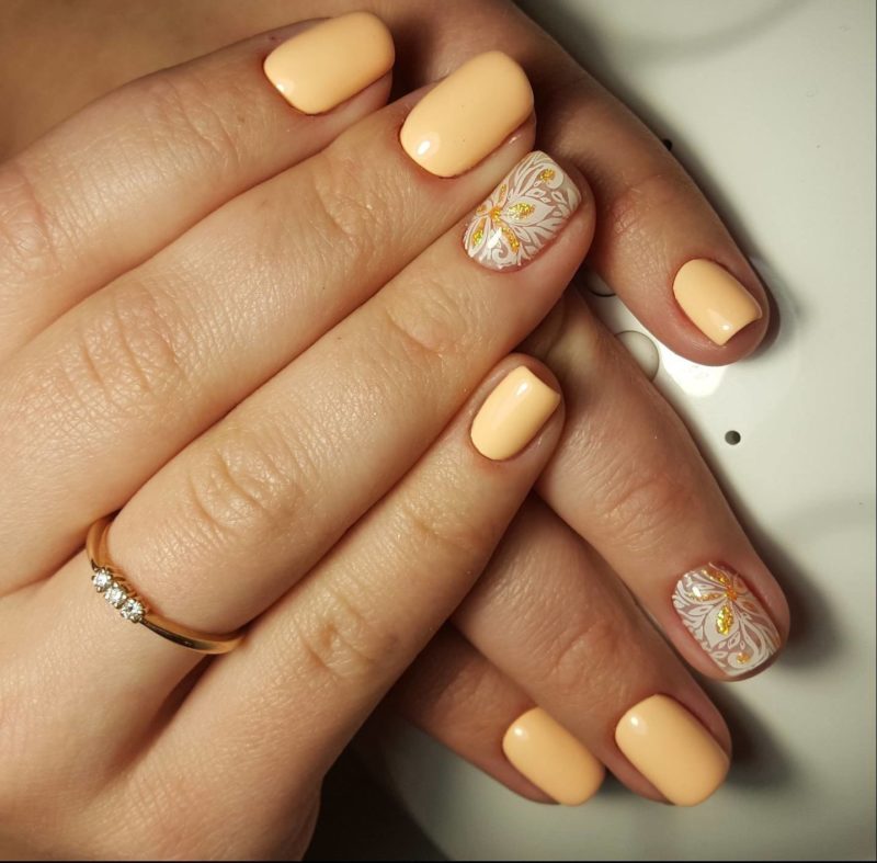 - Рисунки на персиковых ногтях