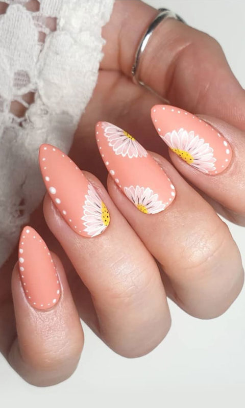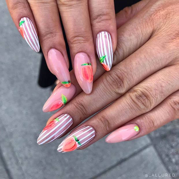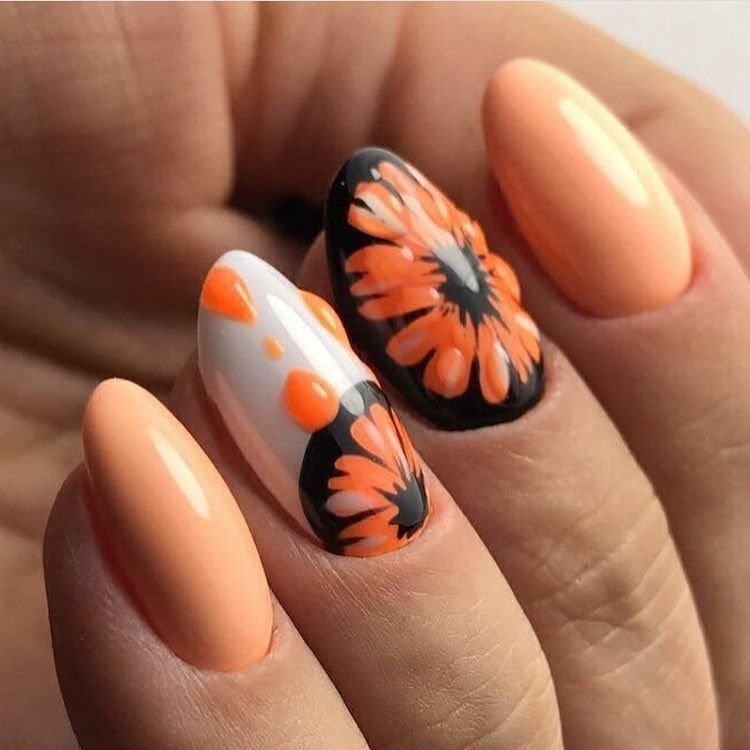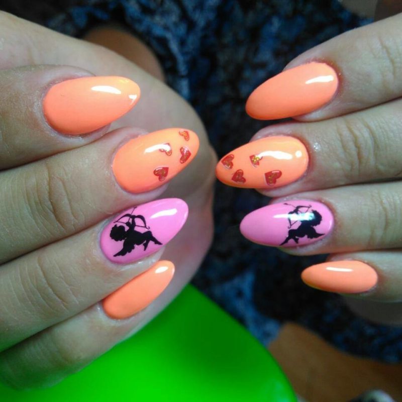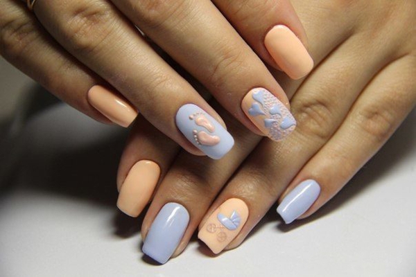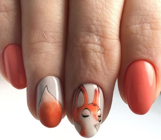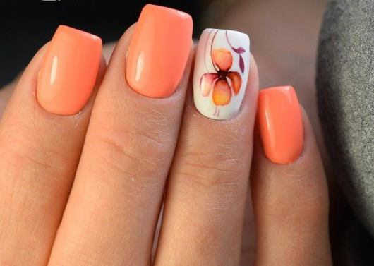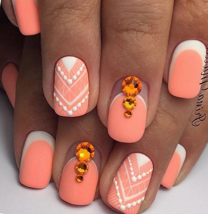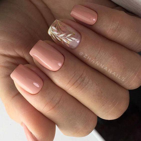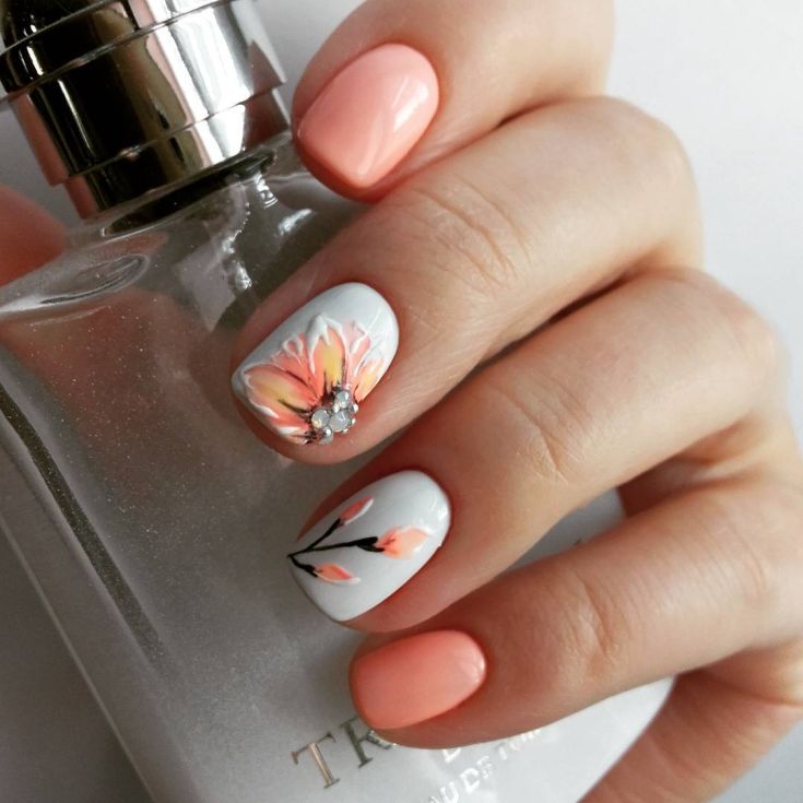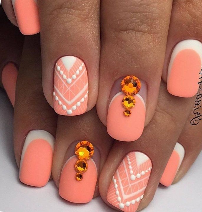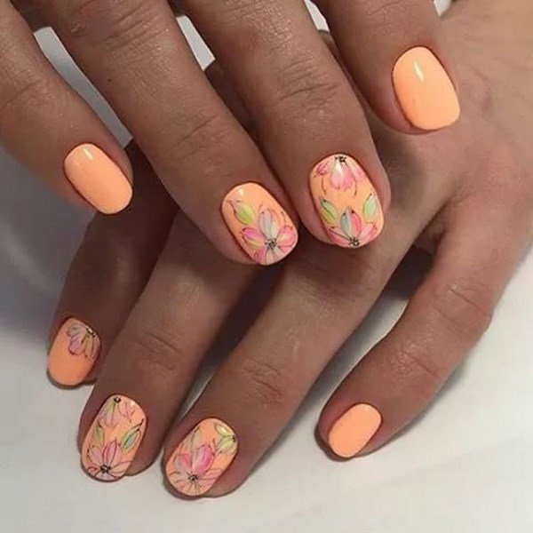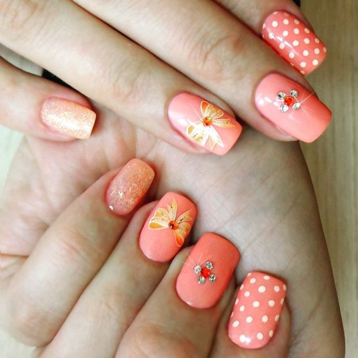 - Рисунки на персиковых ногтях