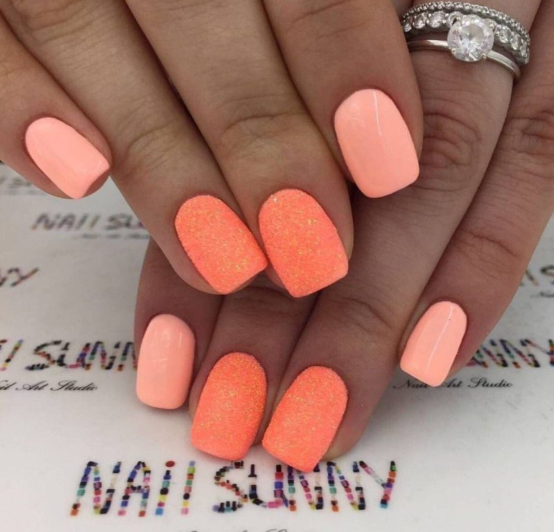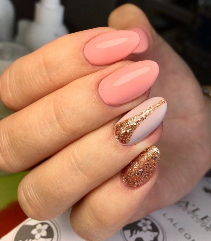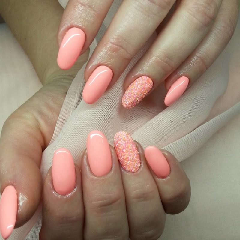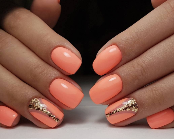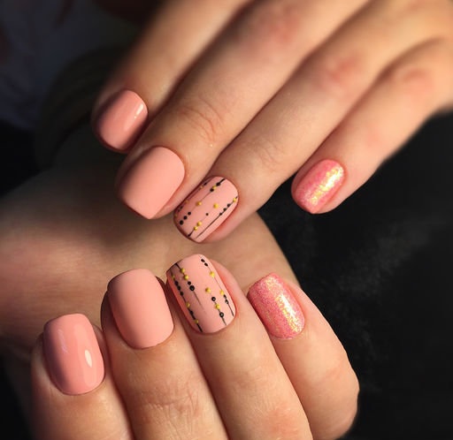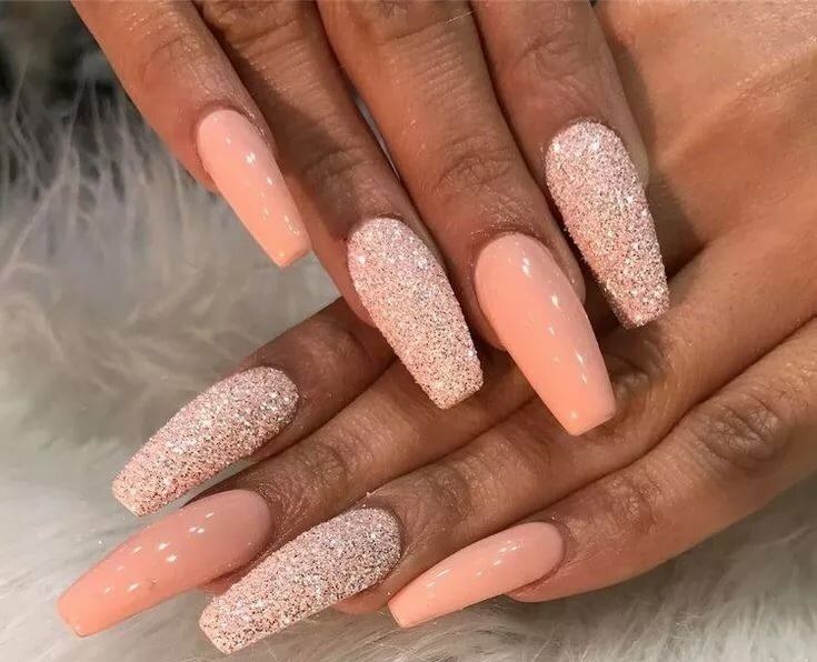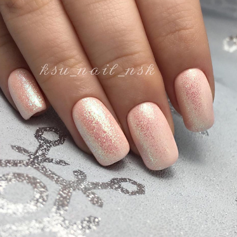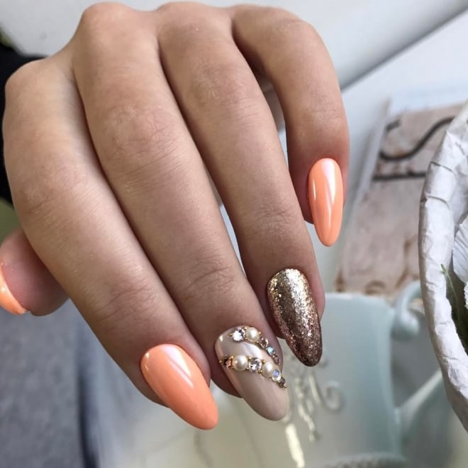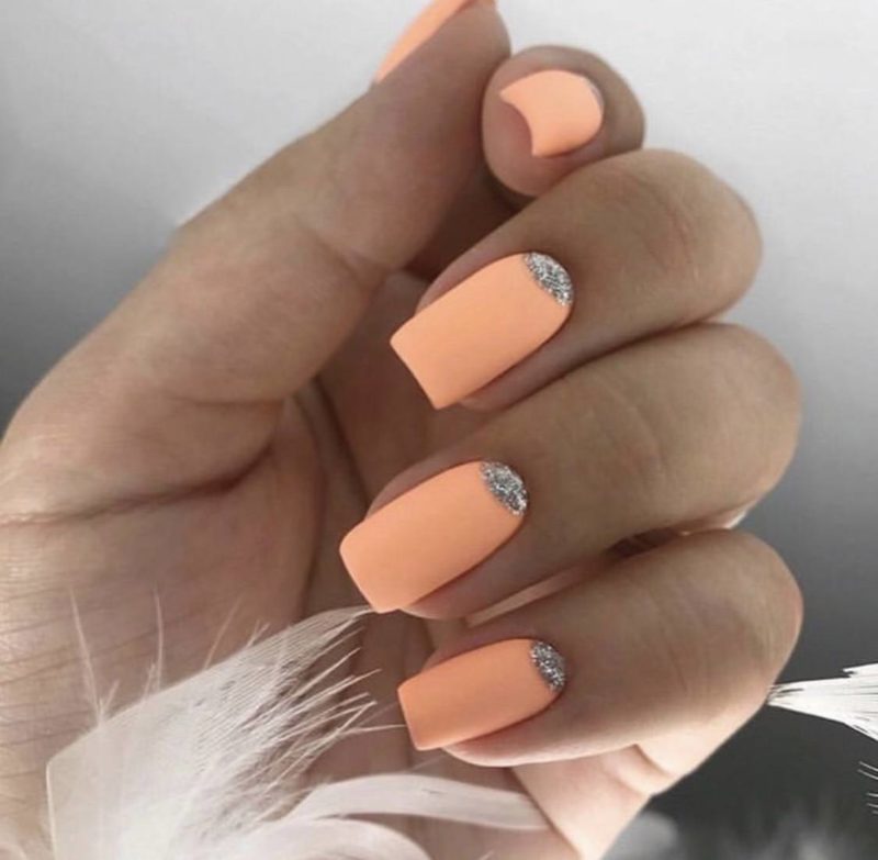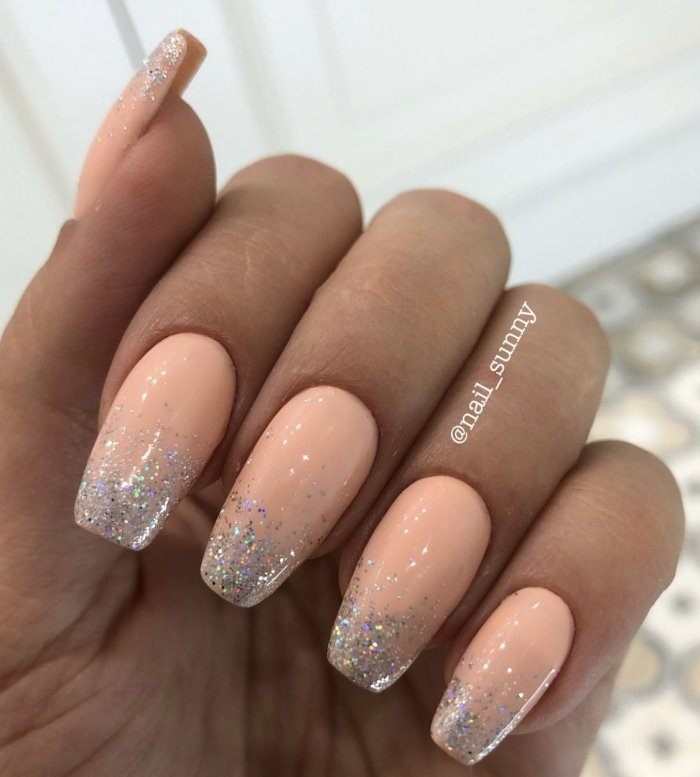 - Персиковый маникюр с блестками
