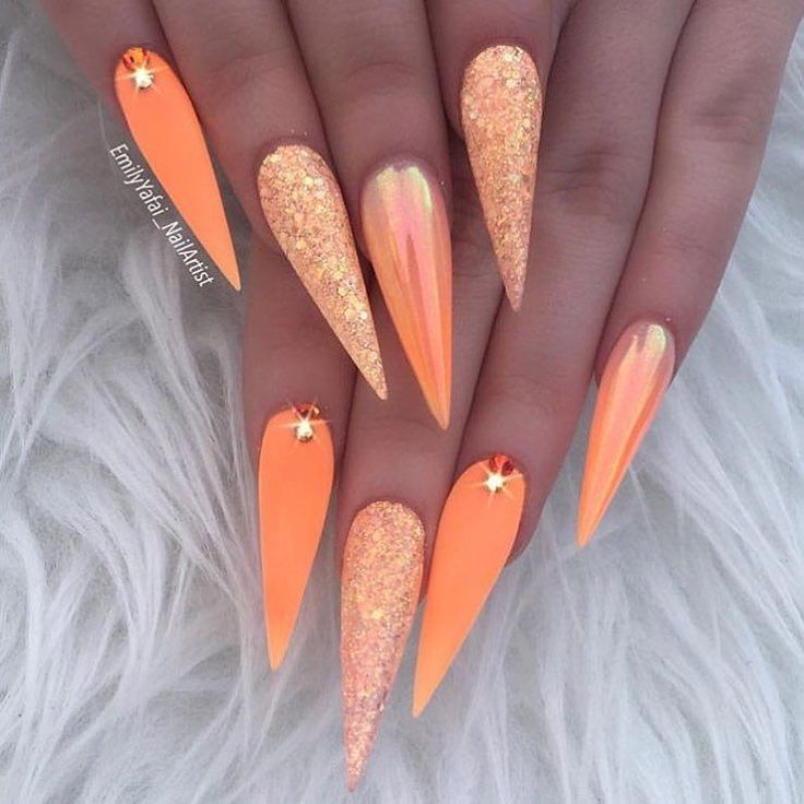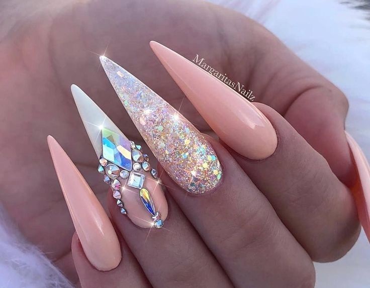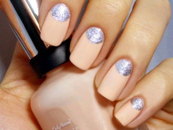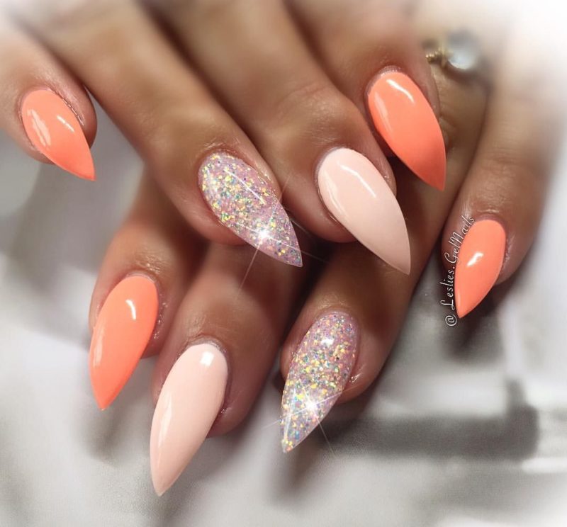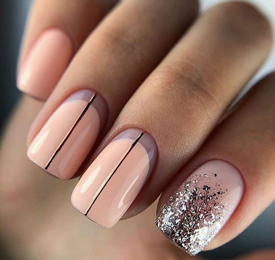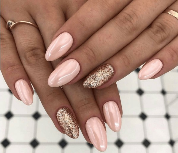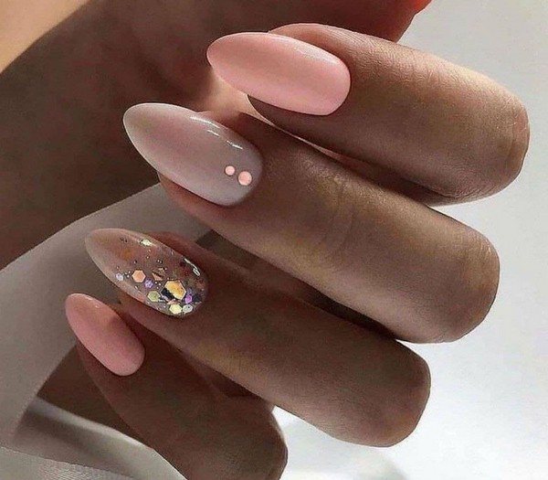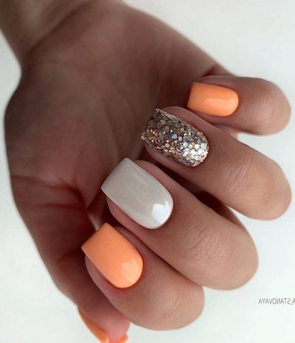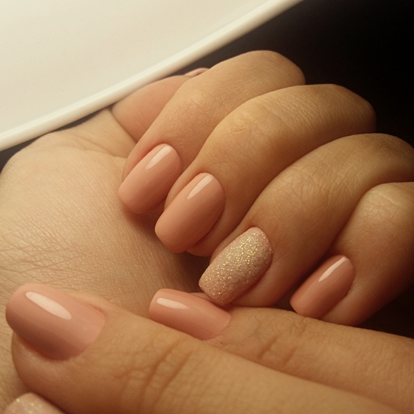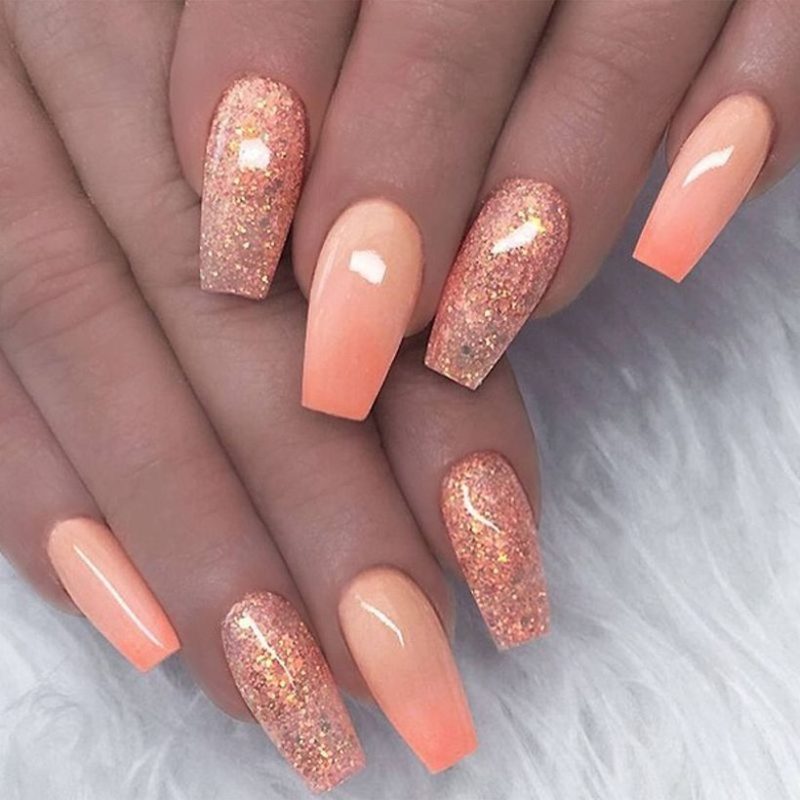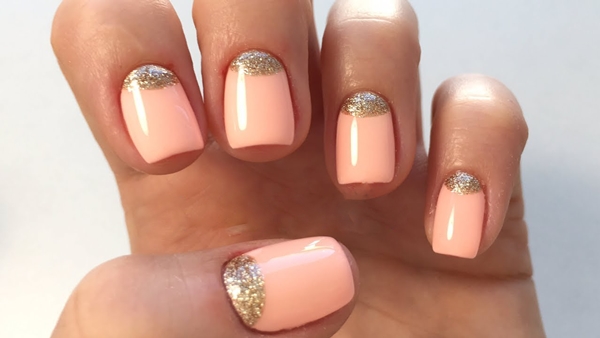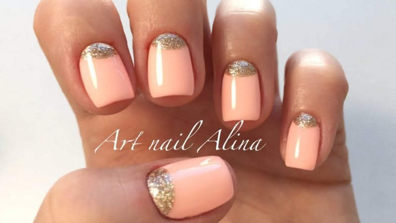 - Персиковый маникюр с блестками