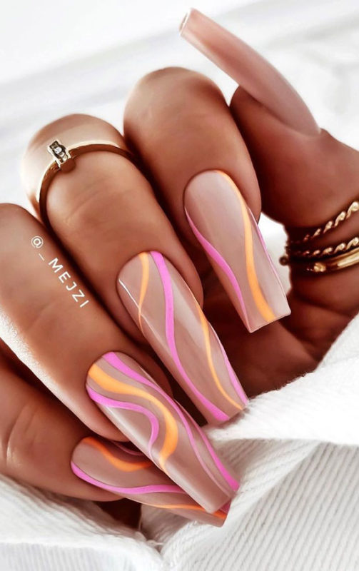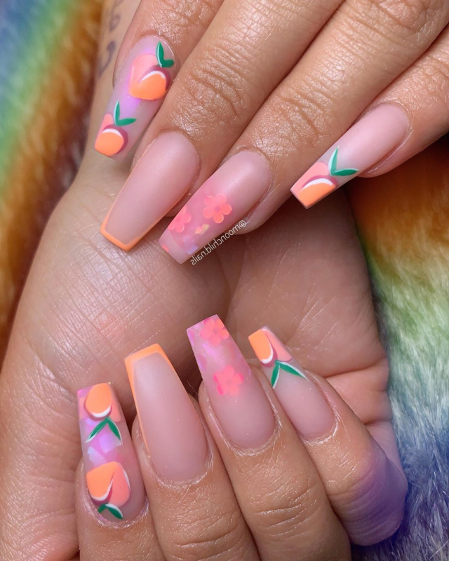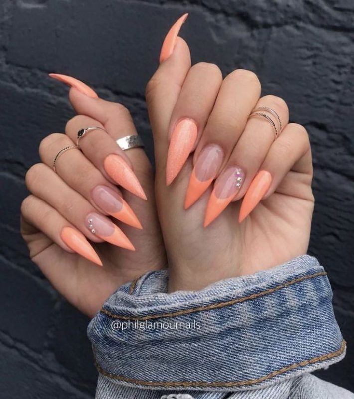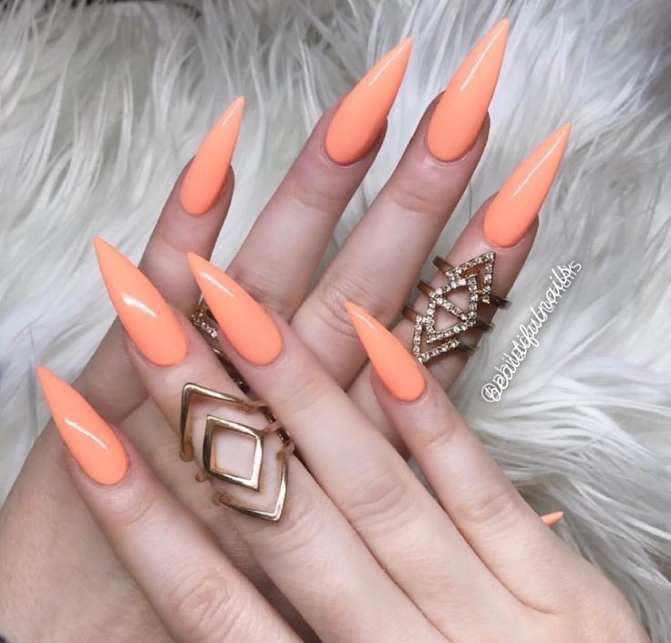 Персиковый маникюр на длинные ногти
