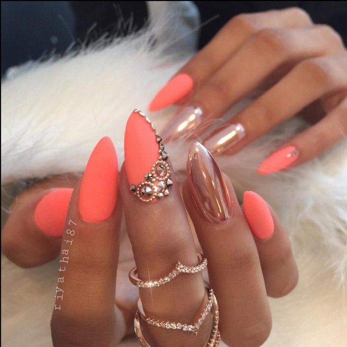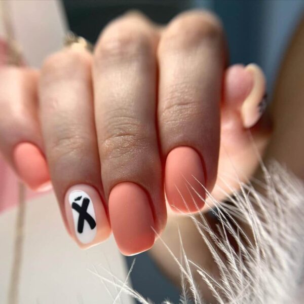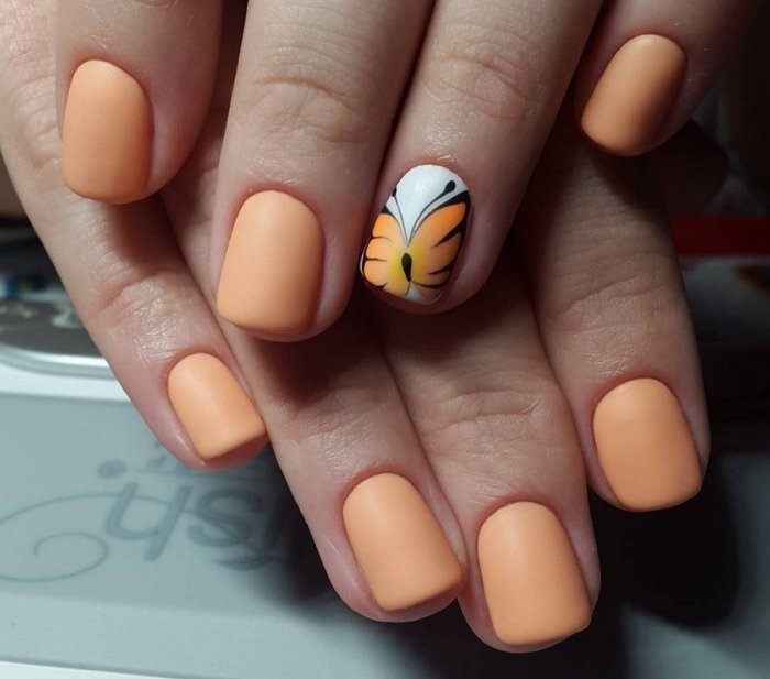 - Матовый персиковый маникюр