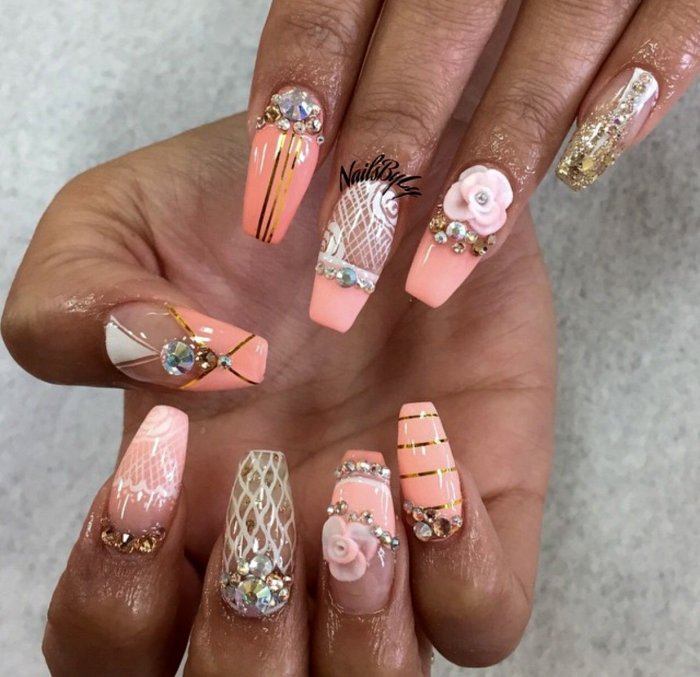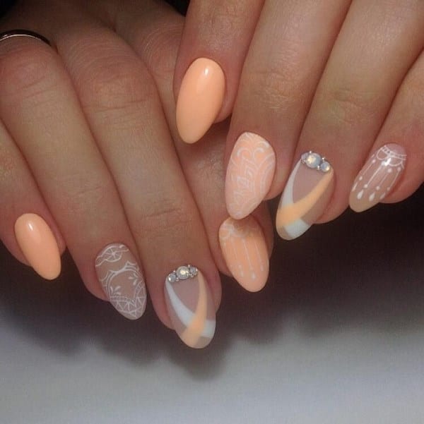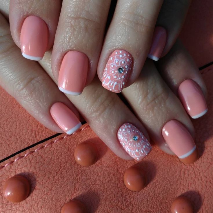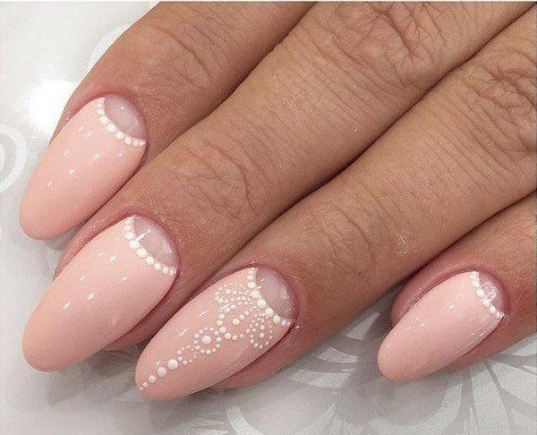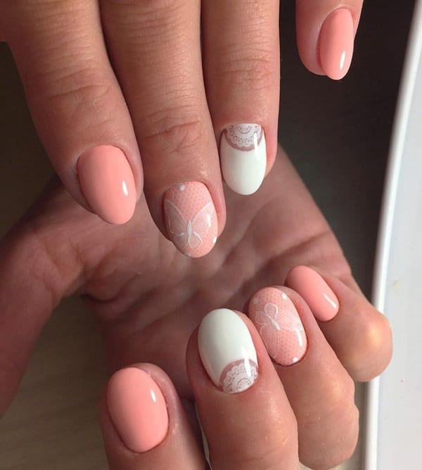 - Персиковые ногти с кружевом