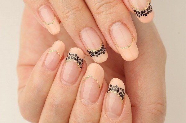 Кружево смотрится очень нежно, воздушно. Кружево придает образу утонченности, такой вариант декора подойдет романтичным, задумчивым натурам. Кружево может быть нарисовано от руки, а можно использовать и наклейки. Главное, чтобы маникюр был выполнен аккуратно, иначе неровное кружево испортит весь образ.