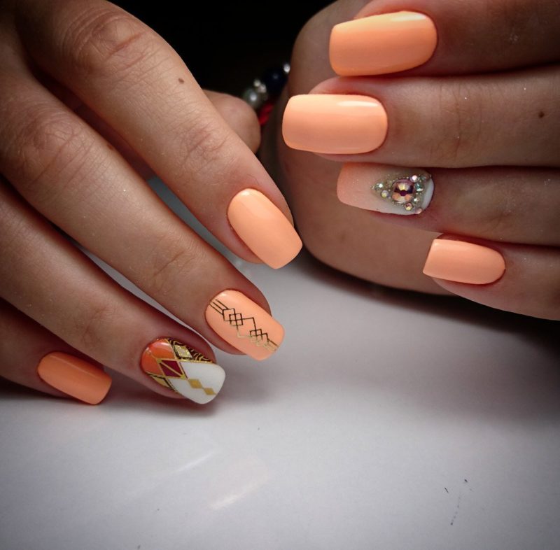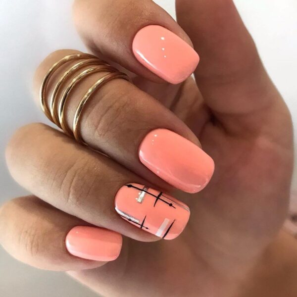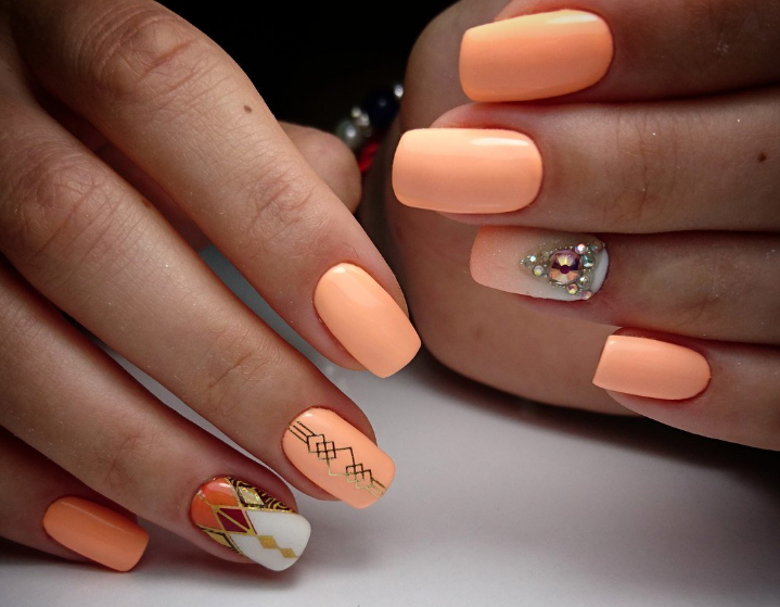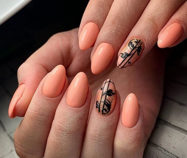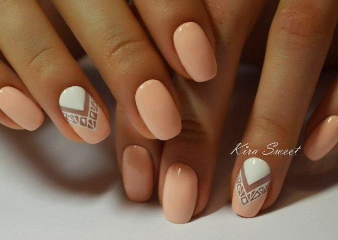 Рисунок на ногтях – это плюс к вашей уникальности. На персиковых ногтях прекрасно будут смотреться нежные растительные, цветочные рисунки. Минималистичные рисунки в этом сезоне в особом почете. Геометрические орнаменты – еще один прекрасный вариант украшения персиковых ноготков.
