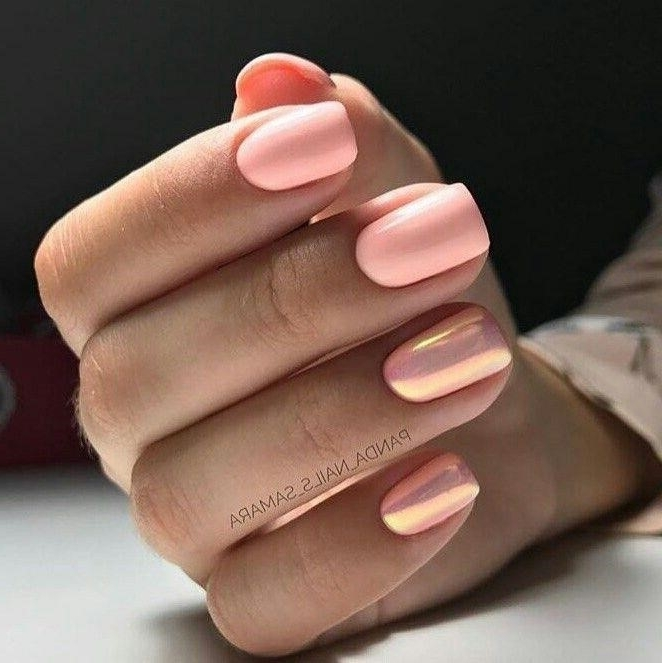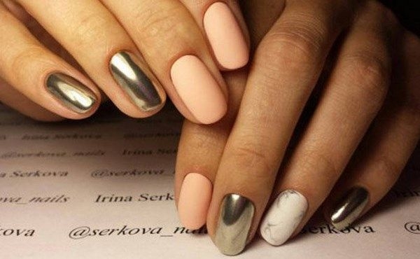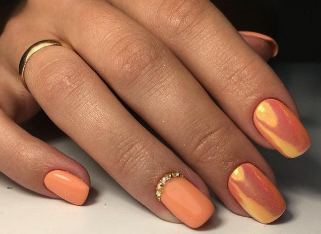 - Ногти персикового цвета с втиркой