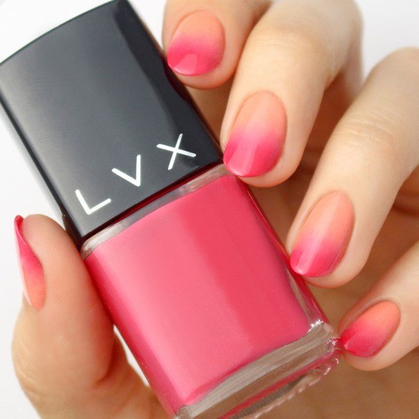 - С розовым. Два родственных цвета – беспроигрышный вариант. Будет изящно смотреться в любом случае. А градиент с розовым и персиковым лаком точно никого не оставит равнодушным. Нежно, натурально и естественно.