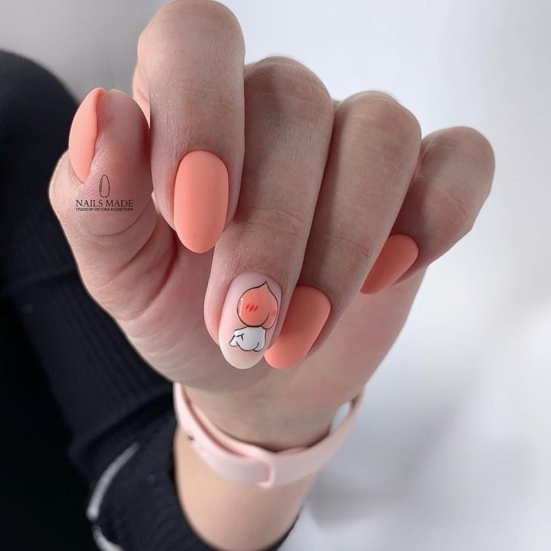 Матовый персиковый маникюр