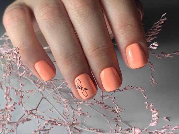 Персиковый маникюр на короткие ногти
