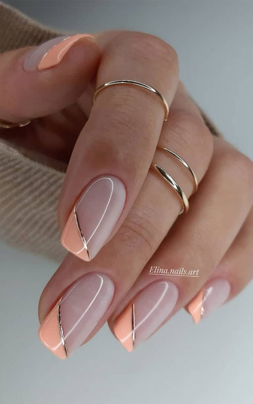 А если у вас не получается придумать что-то интересное, или все идеи уже приелись, и хочется чего-то новенького, то ниже вы сможете увидеть много свежих, актуальных в 2026 годах идей персикового маникюра.