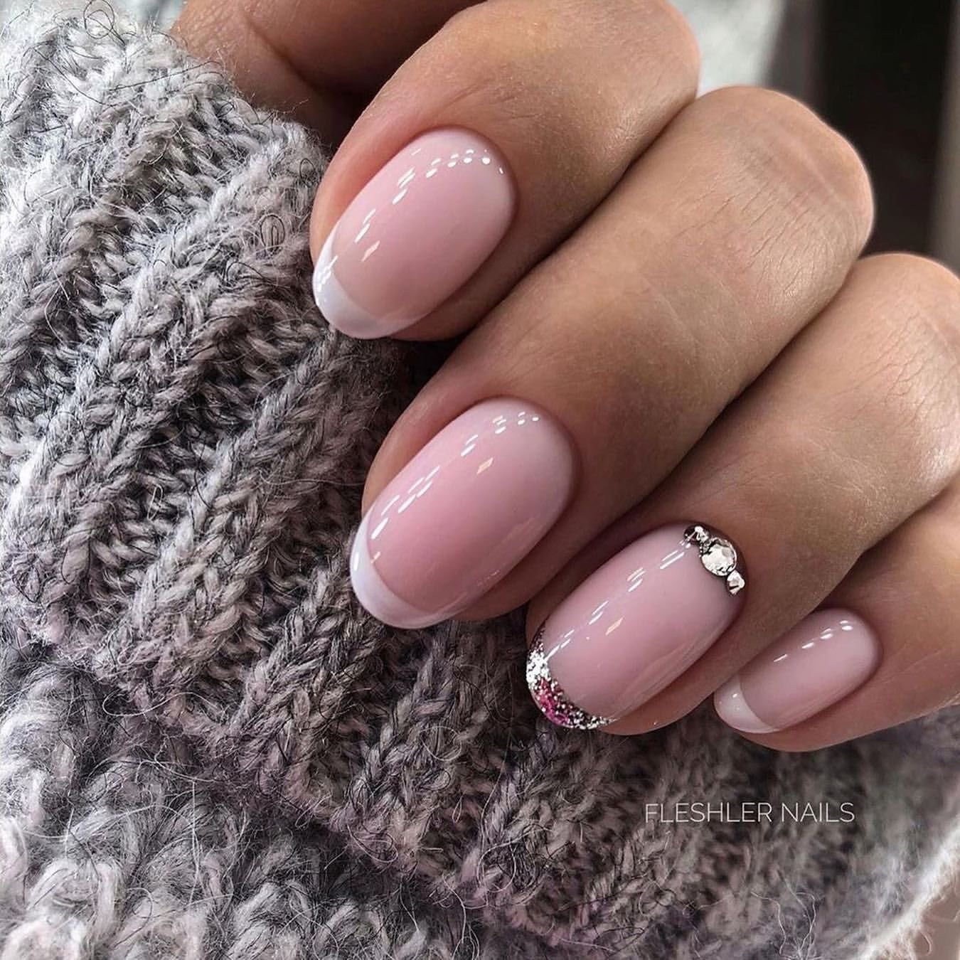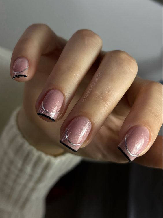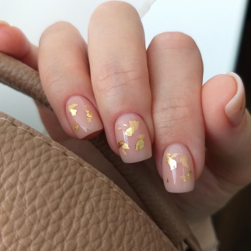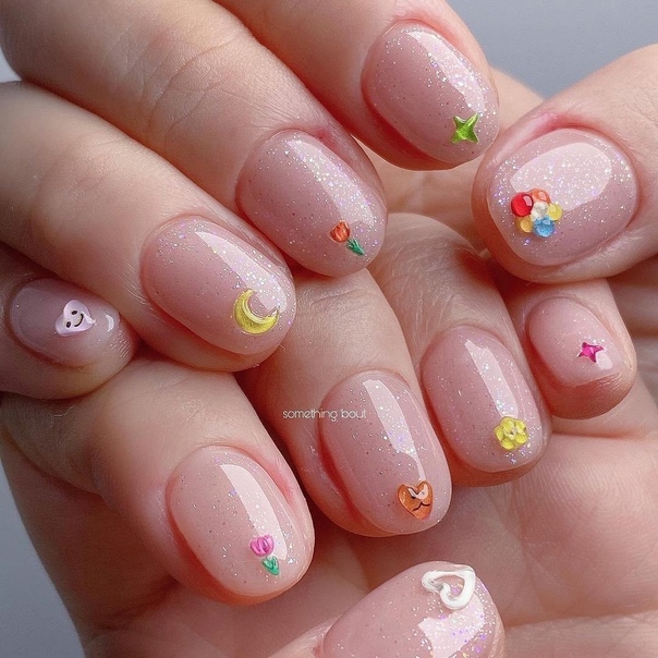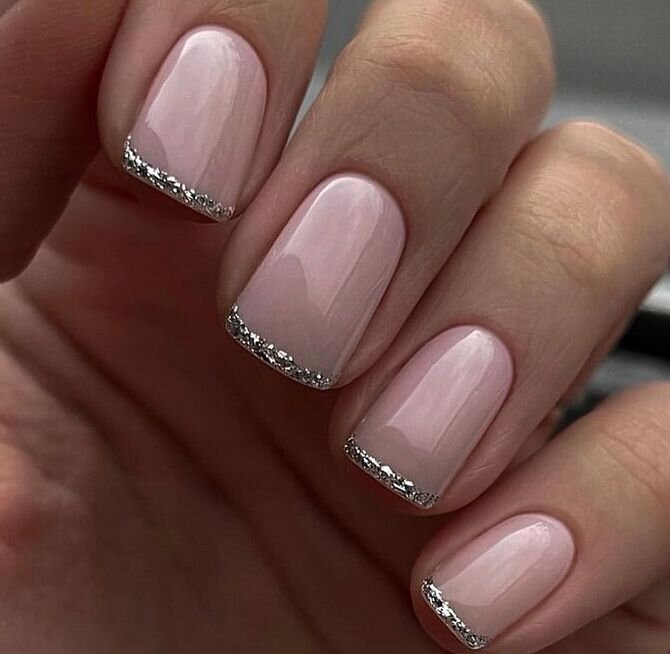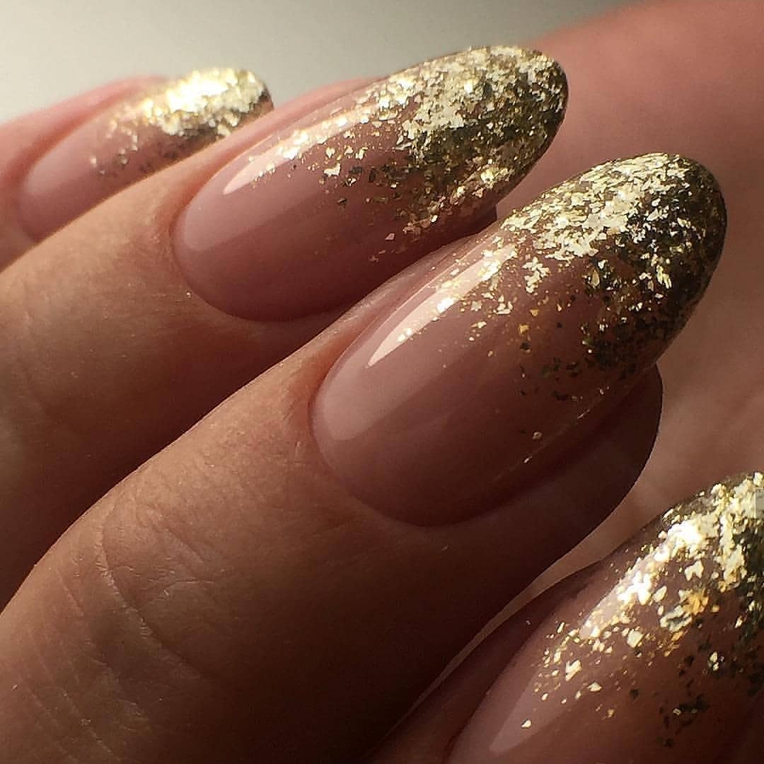 Просто нанесите кисточкой маленькие блестки или мелкий глиттер на ногтевую пластину или только на кончики, чтобы добавить немного блеска. Получится незатейливый. но очень стильный дизайн.